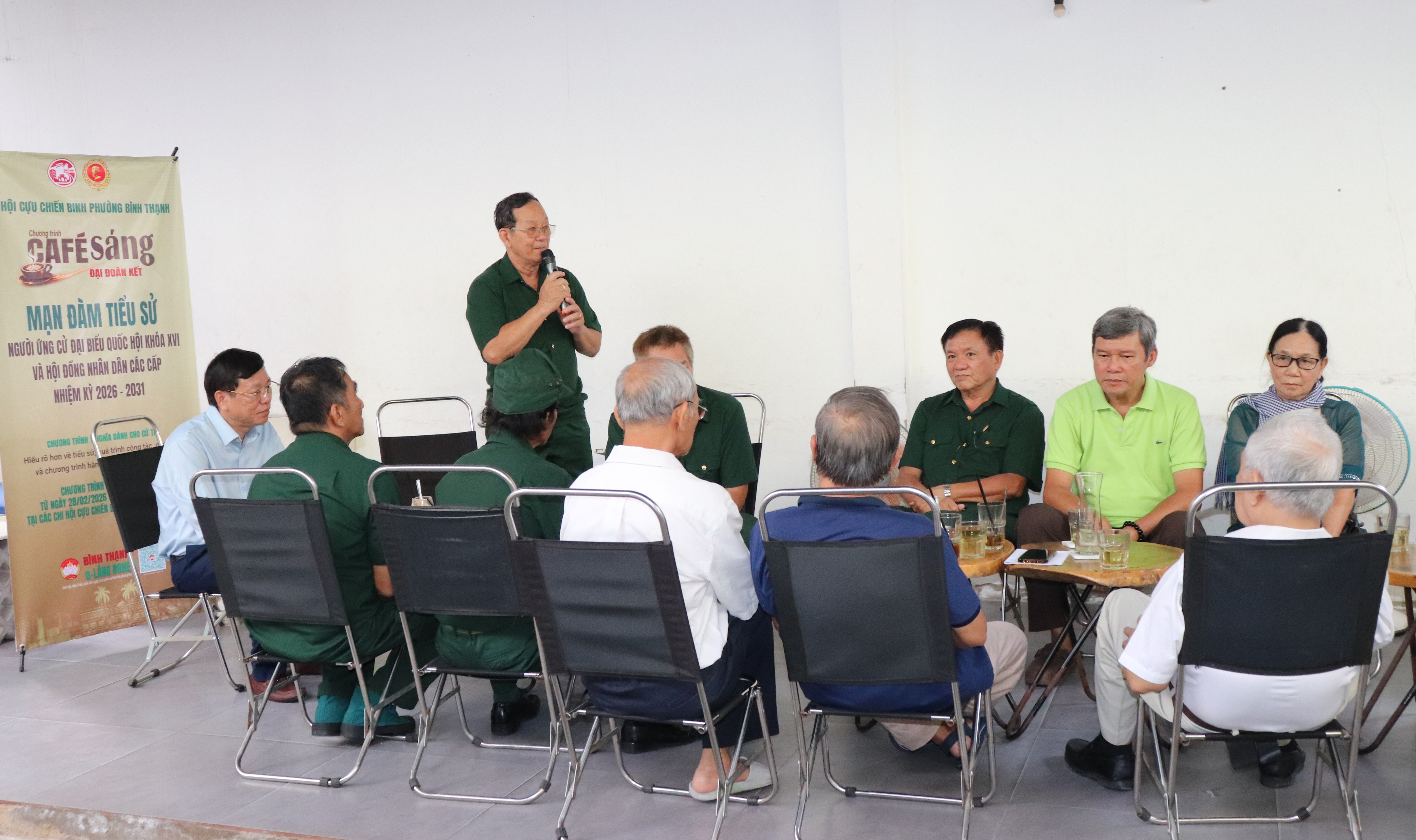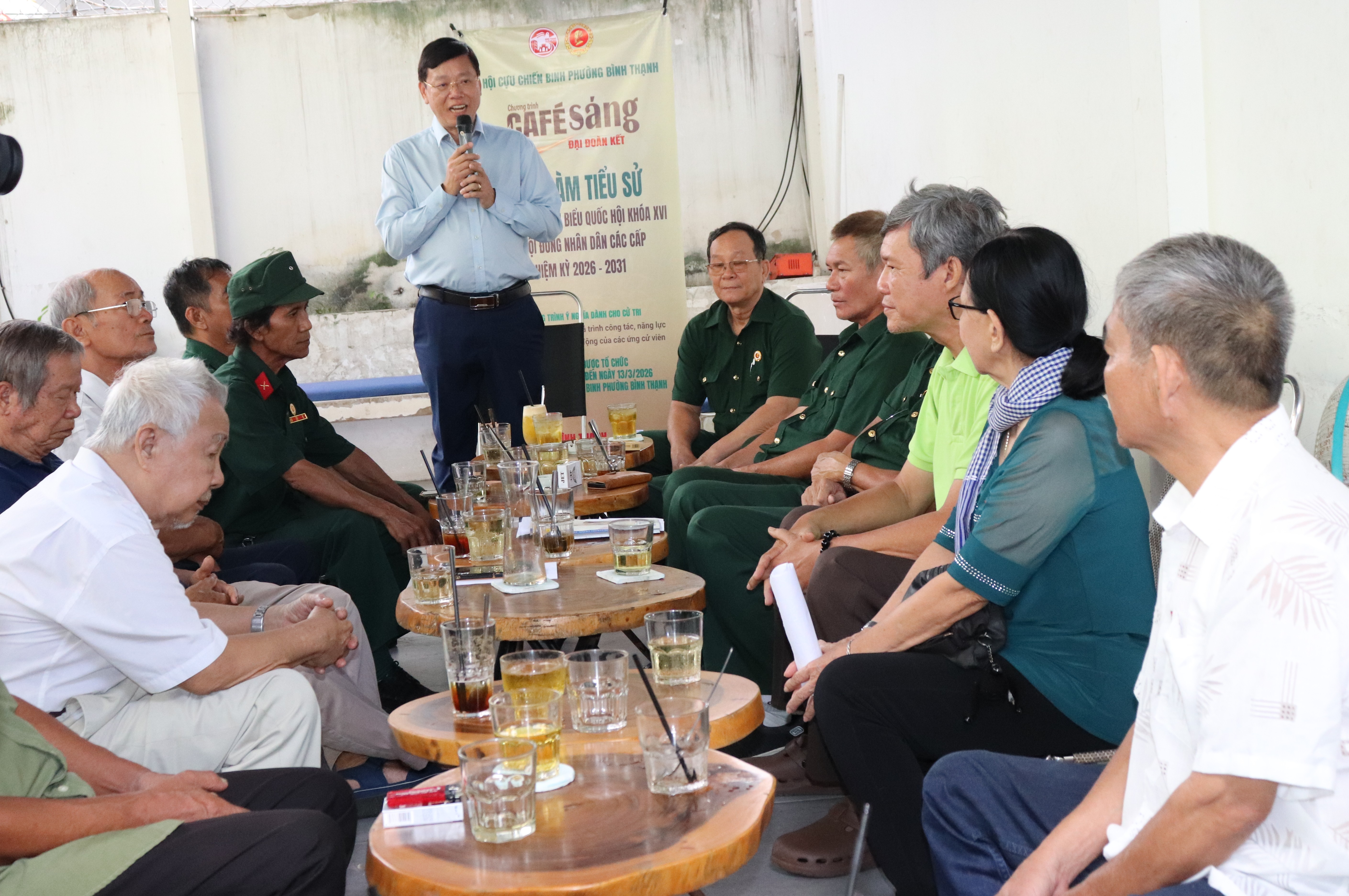 Sáng 28-2, Ủy ban MTTQ Việt Nam phường Bình Thạnh (TPHCM) và Hội Cựu chiến binh phường tổ chức chương trình "Cà phê sáng đại đoàn kết" tại 6 đơn vị bầu cử của phường. Chương trình nhằm giúp cử tri trên địa bàn phường mạn đàm tiểu sử ứng cử viên đại biểu Quốc hội (ĐBQH) khóa XVI và đại biểu HĐND các cấp nhiệm kỳ 2026-2031 (gọi tắt là ứng cử viên).