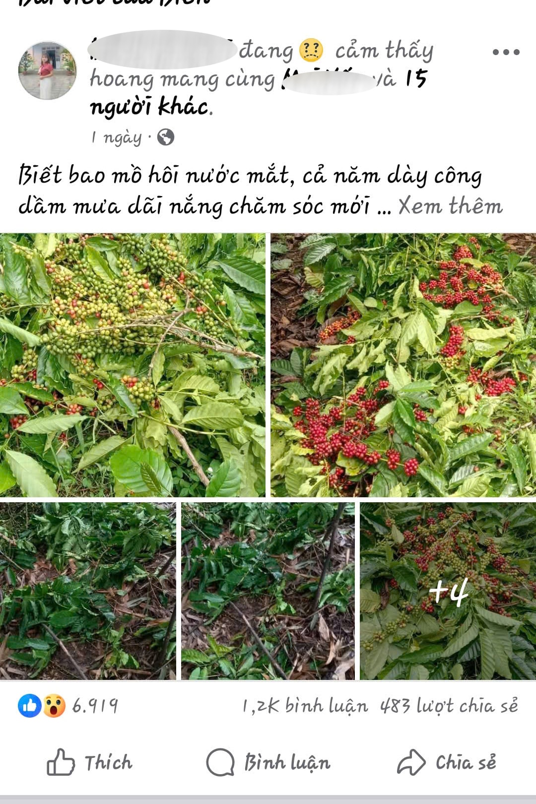 Xót xa vì vườn cà phê bị phá hoại, gia đình ông Bon Niêng Ha Krá đã đăng tải hình ảnh xã hội. Bài viết nhận được tương tác từ hàng nghìn người, phần lớn bày tỏ bức xúc trước hành vi phá hoại, trộm cắp tài sản.