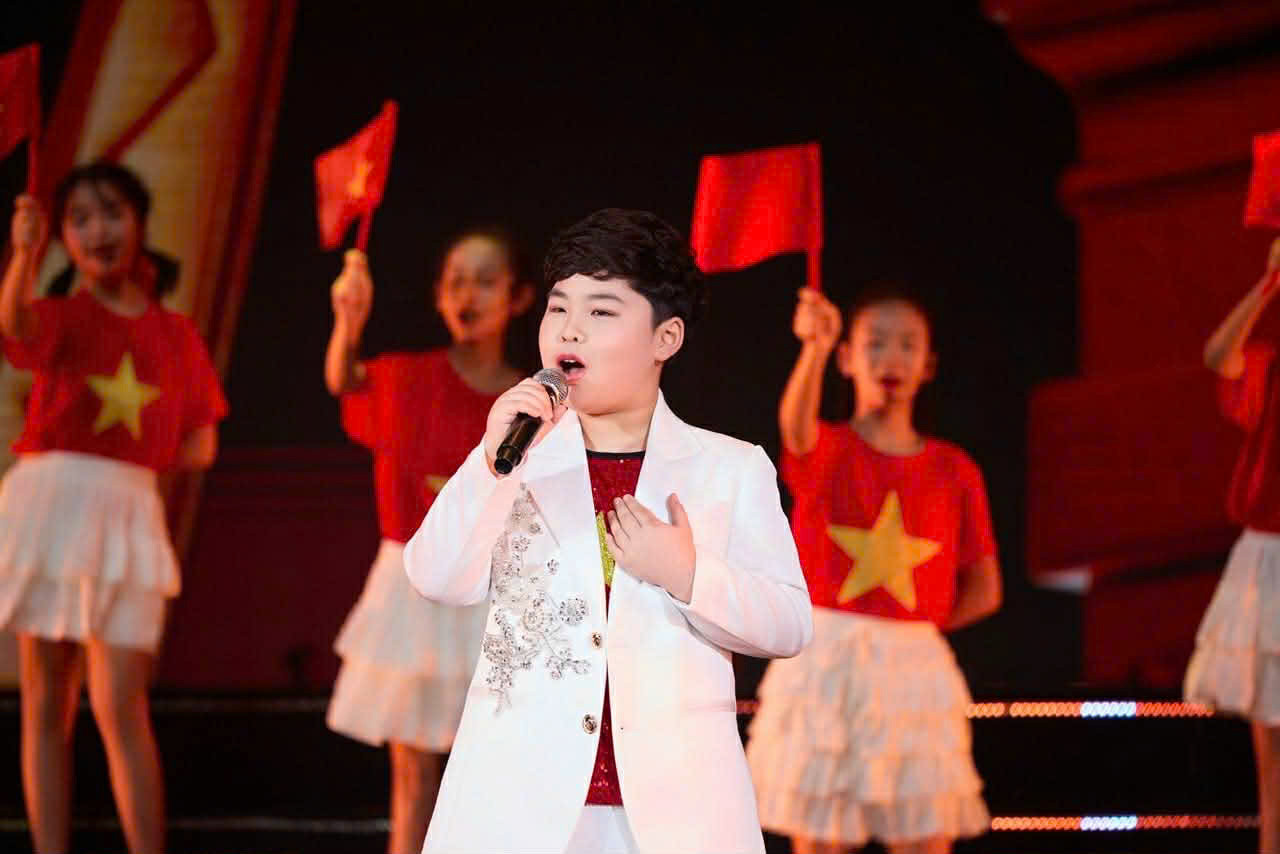 "Em vô cùng tự hào khi được diễn trong một chương trình nghệ thuật lớn như thế này, lại còn hát với các anh DTAP nữa nên em càng phấn khởi, chỉ mong đến giờ diễn để bước ra sân khấu. Em cảm ơn BTC đã cho em cơ hội được hát trong chương trình tuyệt vời này. Khi được nhạc sĩ Lê Anh Thủy giao cho hát ca khúc Nhà tôi có treo một lá cờ, em đã lên mạng để nghe bài hát này qua nhiều phiên bản khác nhau. Được sự hướng dẫn của chú Thủy và các cô chú nên em cũng thuộc bài nhanh và đáp ứng các yêu cầu của đạo diễn", ca sĩ nhí chia sẻ với VietNamNet.