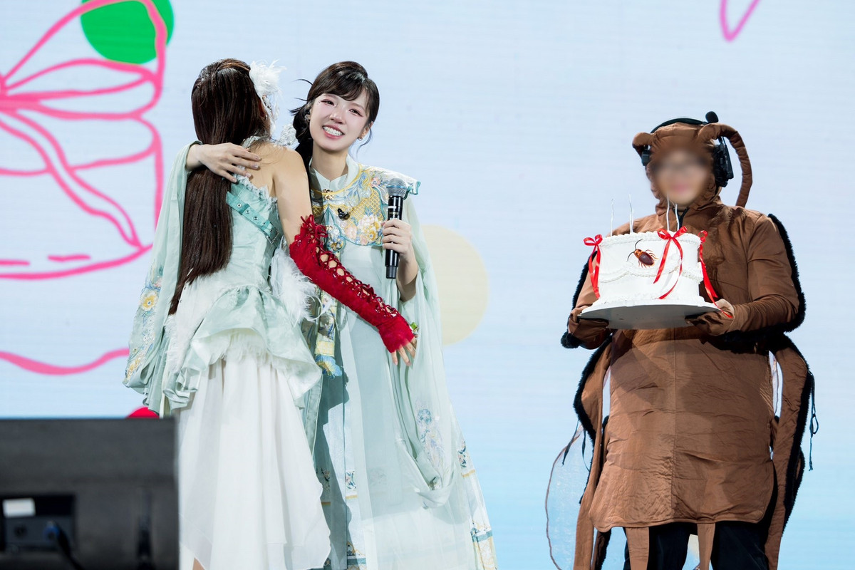 Tuy nhiên, tuổi 23, được mừng sinh nhật ngay trên sân khấu, Khả Lâu lần đầu tiên cảm nhận rõ ràng thế nào là được nhớ đến, được trân trọng. Ảnh: FB Phương Mỹ Chi.