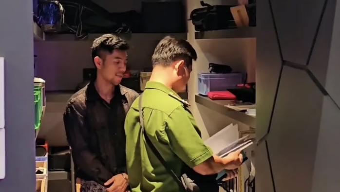 Việc khám xét căn hộ, nơi sinh sống của Ngân 98 có sự chứng kiến của ca sĩ Lương Bằng Quang - người Ngân 98 thường gọi là chồng trong các buổi livestream trên mạng xã hội.