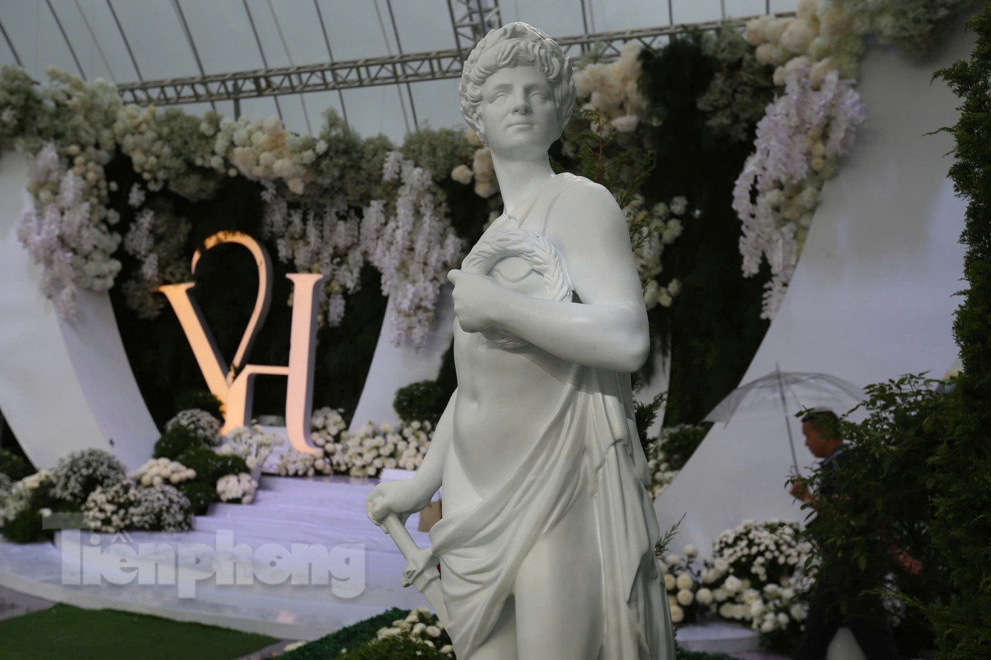 Nhiều tượng đá trắng được dàn dựng công phu bên trong không gian tiệc cưới.