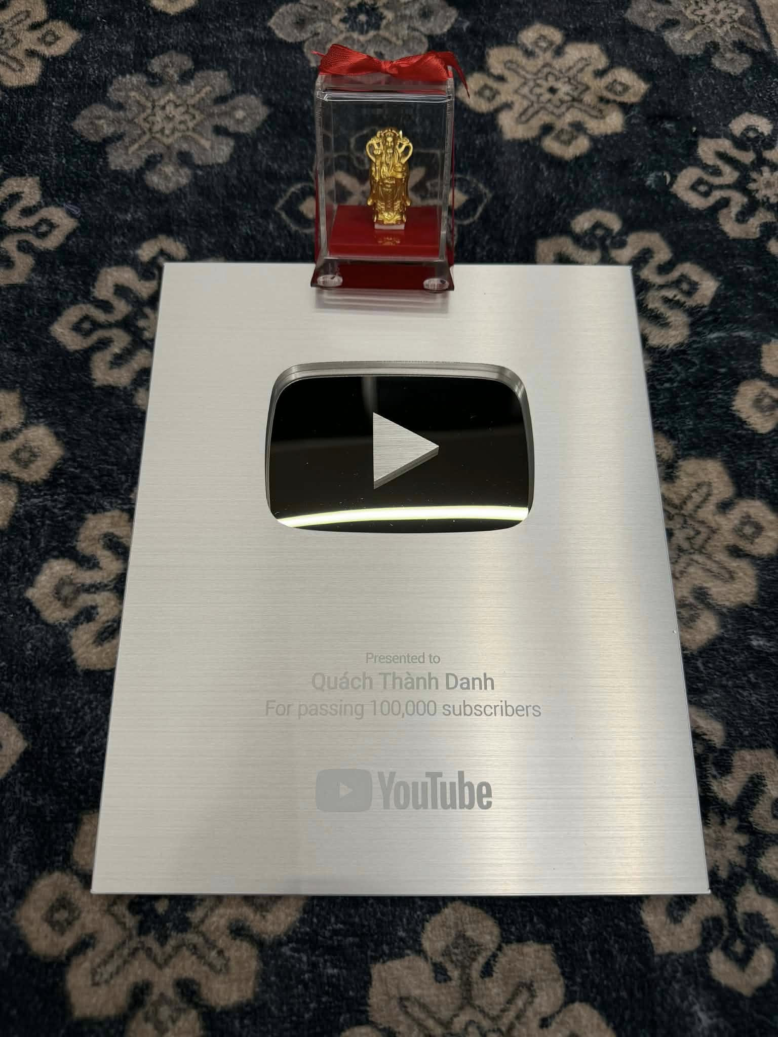 Nam ca sĩ cũng vừa nhận nút bạc YouTube (chứng nhận từ YouTube khi các nhà sáng tạo nội dung đạt cột mốc 100.000 người đăng ký - PV), xem như đầu năm "có bạc lẫn vàng".