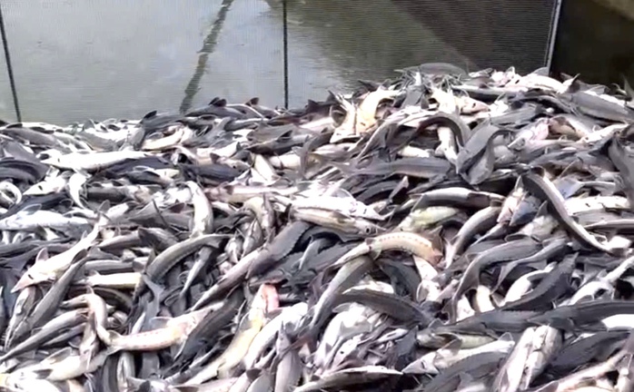Đàn cá tầm bị chết do sốc, thiếu oxy - Ảnh CTV