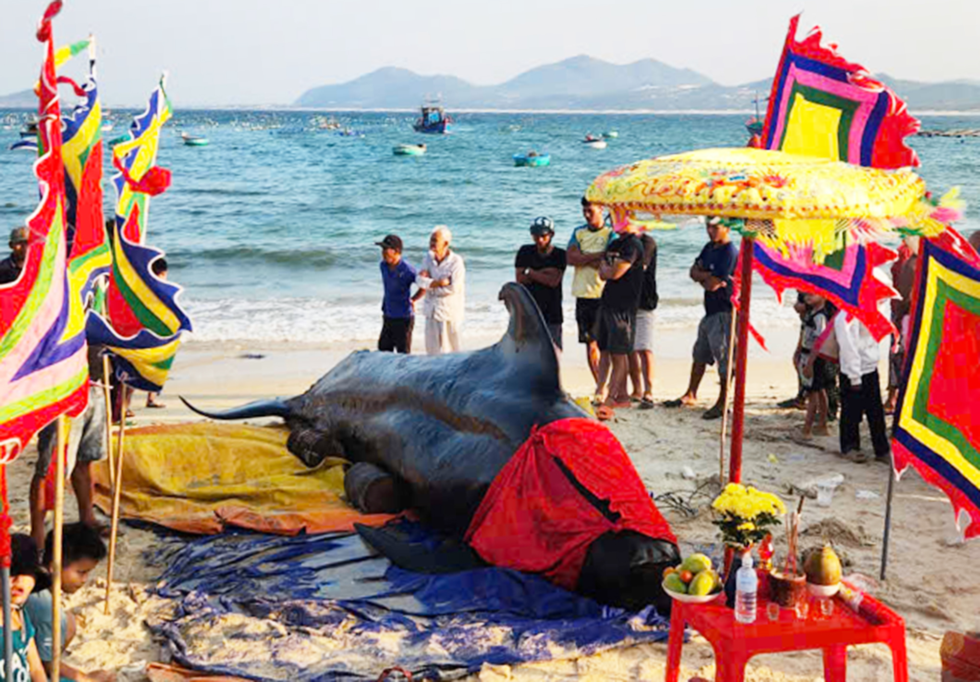 Theo ông Quang, cá voi là loài được ngư dân tôn kính, xem như vị thần hộ mệnh trên biển. Khi phát hiện cá voi trôi dạt vào bờ, người dân thường tìm cách cứu hộ, nếu không qua khỏi thì tổ chức chôn cất trang trọng; người phát hiện đầu tiên sẽ để tang như người thân.