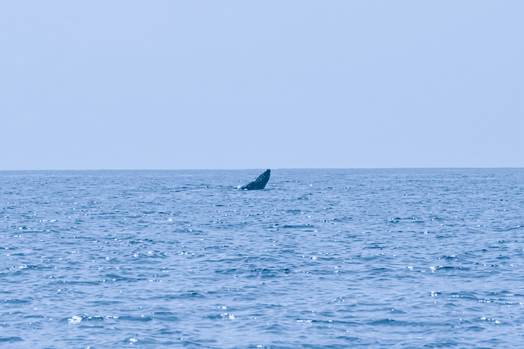 Cá voi dài khoảng 5 m, thi thoảng ngoi lên mặt nước, di chuyển chậm, giữ khoảng cách gần bờ.