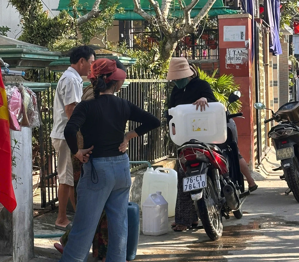Mỗi khi phát hiện nhà nào còn nước, người dân lại mang theo xô, chậu, can nhựa đến xin về dùng tạm. Cảnh tượng người lớn, trẻ nhỏ xếp hàng chờ lấy nước diễn ra nhộn nhịp giữa xóm nhỏ. Có người dùng xe đẩy chở can nước, có người thức đêm canh từng đợt nước chảy nhỏ giọt.