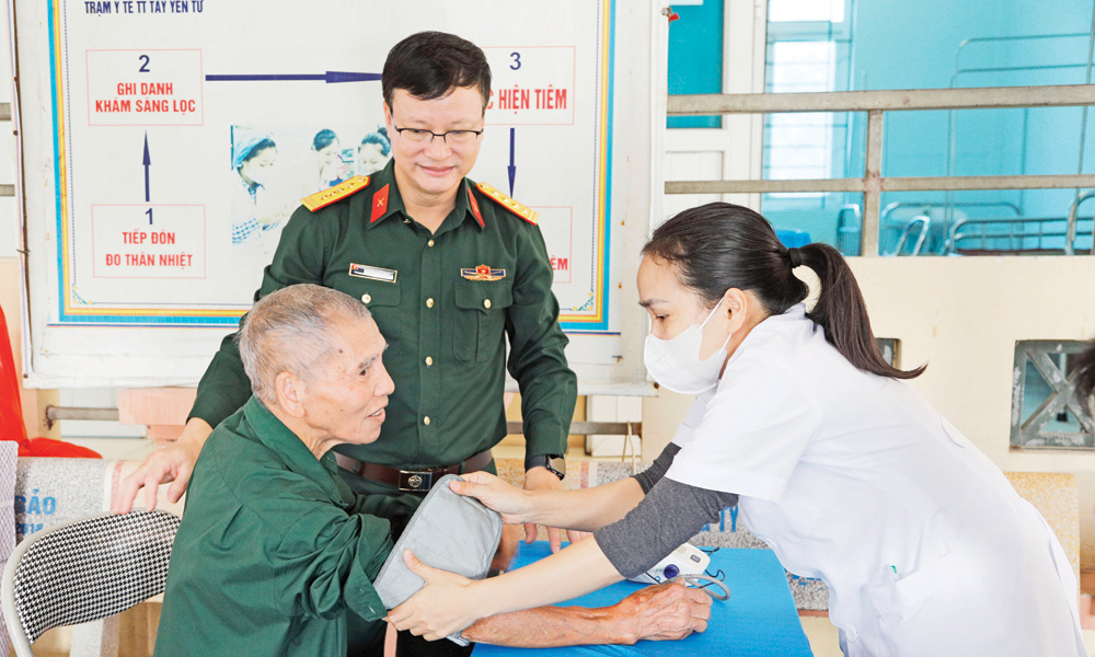 Ngay từ sáng sớm, hàng trăm thương binh, bệnh binh, thân nhân liệt sĩ, người cao tuổi đã có mặt tại khu vực khám bệnh. Các y, bác sĩ quân y cùng cán bộ, chiến sĩ tận tình thăm khám, tư vấn sức khỏe, cấp thuốc miễn phí. Những cái nắm tay, những lời hỏi han ân cần khiến không khí buổi khám bệnh thêm ấm áp. Cựu chiến binh Nguyễn Viết Phóng, thôn Láng xúc động nói: “Được quân đội quan tâm khám sức khỏe, tặng quà, chúng tôi rất vui. Không chỉ là thuốc men, đó còn là sự tri ân, tình cảm của Đảng, Nhà nước và quân đội dành cho những người từng cống hiến cho Tổ quốc”.