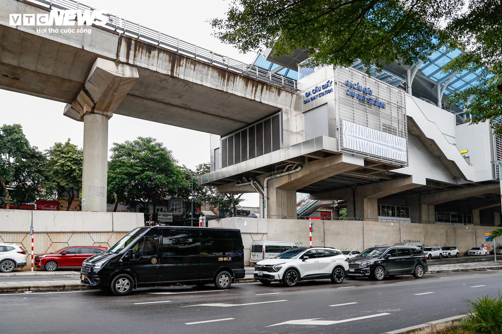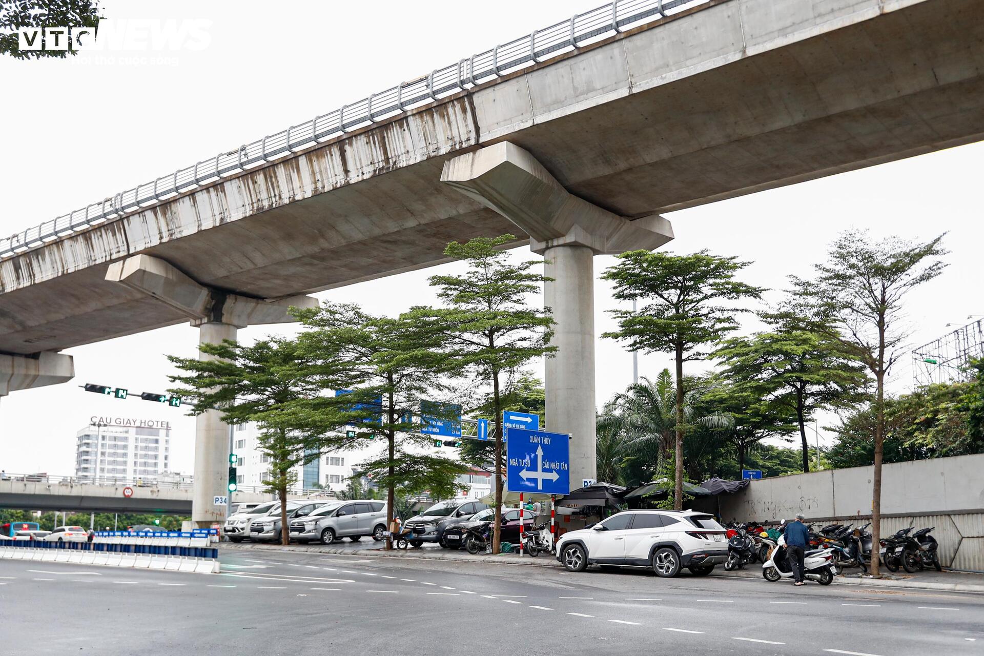 Hàng loạt xe ô tô dừng đỗ dưới khu vực gầm nhà ga Cầu Giấy.