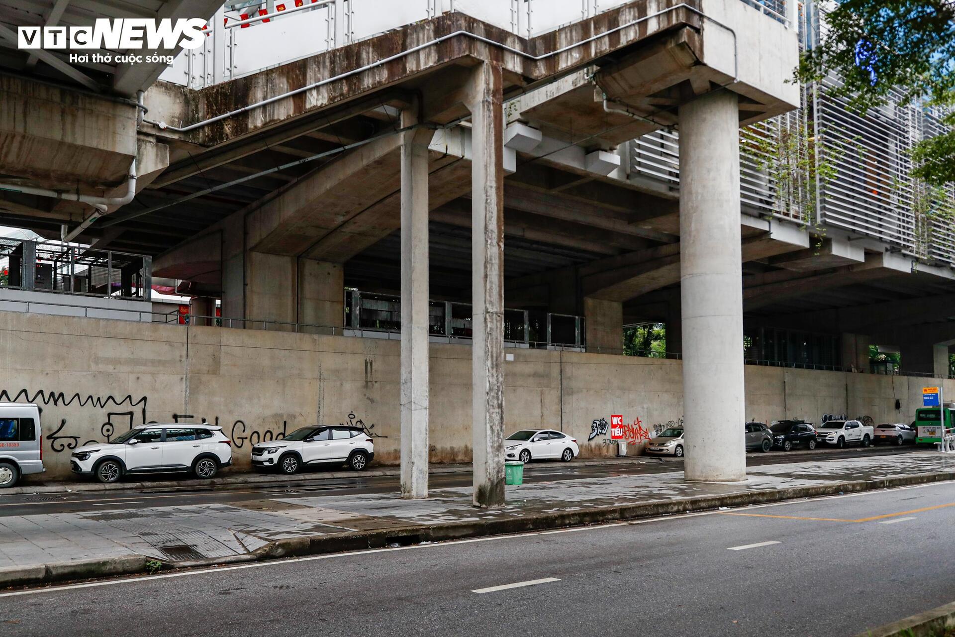Tại khu vực dưới gầm nhà ga Cầu Giấy của dự án đường sắt đô thị Nhổn - ga Hà Nội, xe ô tô, xe máy vẫn được trông giữ hoặc để dưới gầm cầu cạn.
