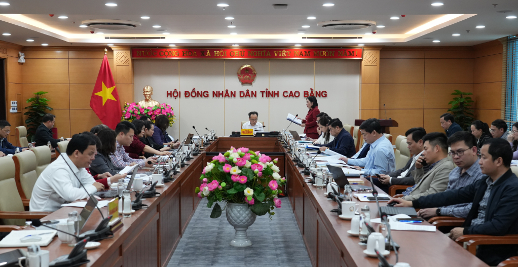Phiên họp tiến hành thẩm tra các báo cáo, dự thảo nghị quyết: Điều chỉnh Quy hoạch tỉnh thời kỳ 2021 - 2030, tầm nhìn đến năm 2050; Chủ trương chuyển mục đích sử dụng rừng sang mục đích khác trên địa bàn tỉnh năm 2026; Quy định mức thu, chế độ thu, nộp, quản lý và sử dụng Phí sử dụng công trình kết cấu hạ tầng, công trình dịch vụ, tiện ích công cộng trong khu vực cửa khẩu trên địa bàn tỉnh Cao Băng (thay thế Nghị quyêt số 31/2022/NQ HĐND ngày 15/7/2022 của HĐND tỉnh Cao Bằng); Báo cáo việc thực hiện dự án đầu tư công khẩn cấp xây dựng Trung tâm y tế Bảo Lạc.