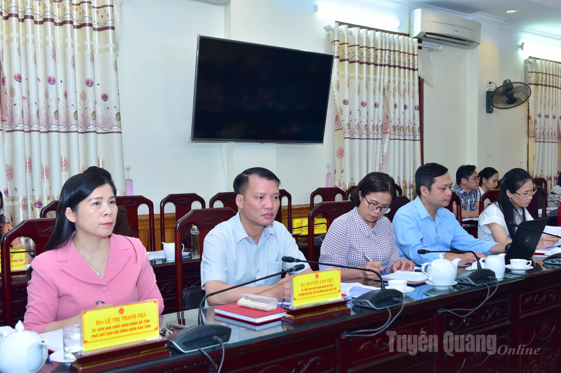 Tại cuộc họp, Ban Dân tộc và Ban Pháp chế HĐND tỉnh đã thẩm tra 6 dự thảo nghị quyết, gồm: Quy định chính sách hỗ trợ thực hiện bố trí ổn định dân cư các vùng: Thiên tai, đặc biệt khó khăn, biên giới, di cư tự do, khu rừng đặc dụng trên địa bàn tỉnh Tuyên Quang giai đoạn 2025-2030; Phân bổ dự toán chi thường xuyên ngân sách Trung ương thực hiện Chương trình mục tiêu quốc gia phát triển kinh tế - xã hội vùng đồng bào dân tộc thiểu số và miền núi tỉnh Tuyên Quang năm 2025; Điều chỉnh kế hoạch đầu tư vốn ngân sách nhà nước giai đoạn 2021-2025 và giao bổ sung kế hoạch đầu tư vốn ngân sách nhà nước năm 2025 (theo Quyết định số 1148/QĐ-TTg) thực hiện Chương trình mục tiêu quốc gia phát triển kinh tế - xã hội vùng đồng bào dân tộc thiểu số và miền núi tỉnh Tuyên Quang; Quyết định chủ trương chuyển mục đích sử dụng rừng sang mục đích khác để thực hiện Dự án Tuyến đường từ thị trấn Sơn Dương (cũ) đi xã Tân Trào; Quy định mức kinh phí hỗ trợ hoạt động của Ban Thanh tra nhân dân ở xã, phường trên địa bàn tỉnh; Quy định mức trợ cấp một lần đối với người làm việc ngoài chỉ tiêu biên chế tại các Hội do Đảng, Nhà nước giao nhiệm vụ ở cấp tỉnh hoặc ở cấp huyện trước thời điểm ngày 1- 7- 2025 nghỉ việc ngay do thực hiện mô hình tổ chức chính quyền địa phương 2 cấp trên địa bàn tỉnh.