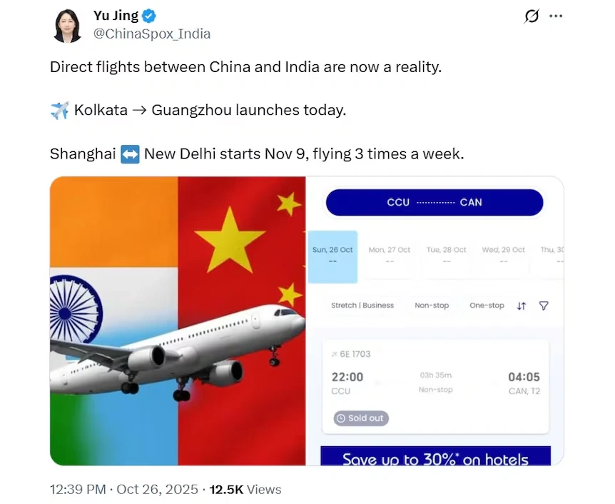 Giới quan sát nhận định việc nối lại đường bay mang ý nghĩa biểu tượng, thể hiện nỗ lực hàn gắn quan hệ song phương sau giai đoạn căng thẳng nghiêm trọng. Các chuyến bay thương mại giữa hai nước bị đình chỉ từ năm 2020, sau vụ đụng độ chết người tại thung lũng Galwan khiến quan hệ rơi vào bế tắc.