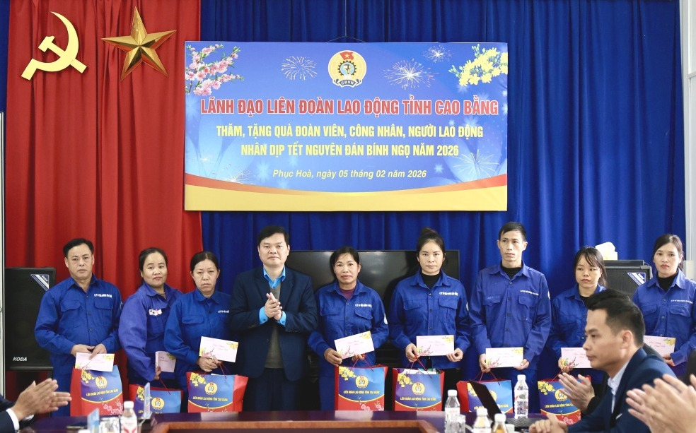 Nhằm động viên, chia sẻ khó khăn với người lao động dịp Tết Nguyên đán Bính Ngọ 2026, Liên đoàn Lao động tỉnh trao tặng 20 suất quà, tổng trị giá trên 16 triệu đồng tặng công nhân, người lao động Công ty, góp phần khích lệ tinh thần, giúp người lao động yên tâm làm việc, gắn bó với doanh nghiệp.