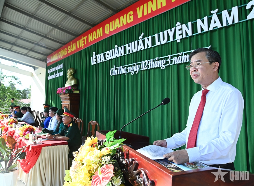 Đồng chí Trương Cảnh Tuyên, Chủ tịch UBND TP Cần Thơ phát biểu chỉ đạo tại Lễ ra quân huấn luyện năm 2026.