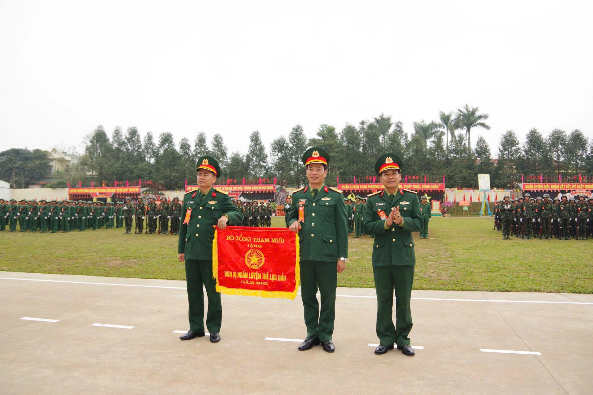 Đơn vị đón nhận Cờ thi đua đơn vị huấn luyện thể lực giỏi năm 2025.