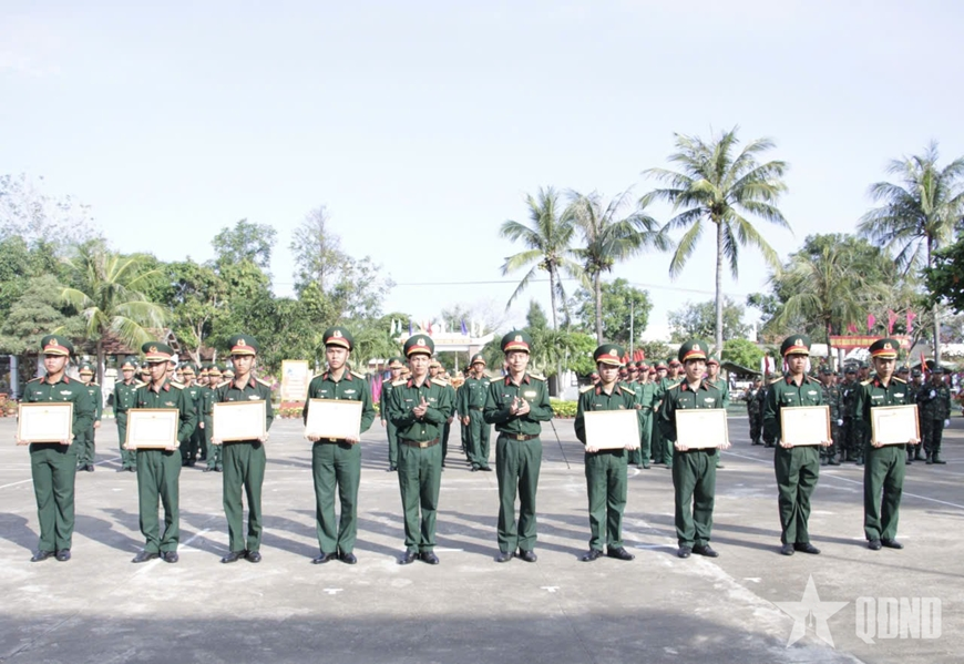 Chỉ huy Trung đoàn Bộ binh 888 khen thưởng các tập thể, cá nhân xuất sắc.