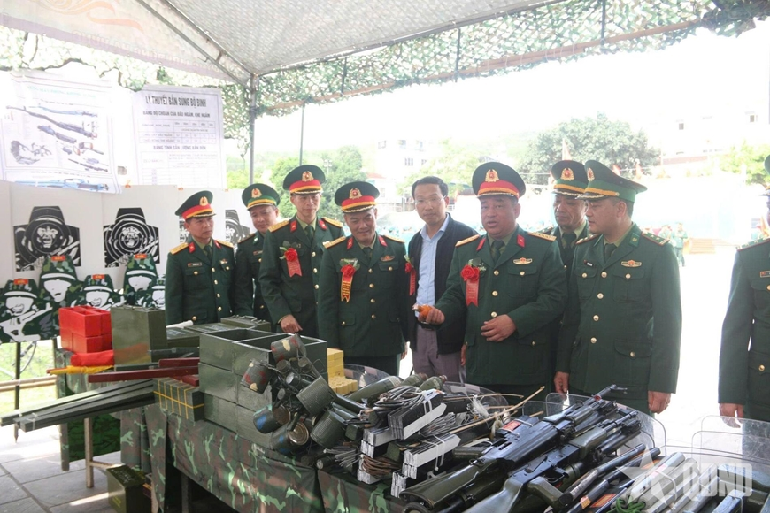 Các đại biểu tham quan các vũ khí, trang bị phục vụ công tác huấn luyện của Ban chỉ huy Phòng thủ khu vực 3.