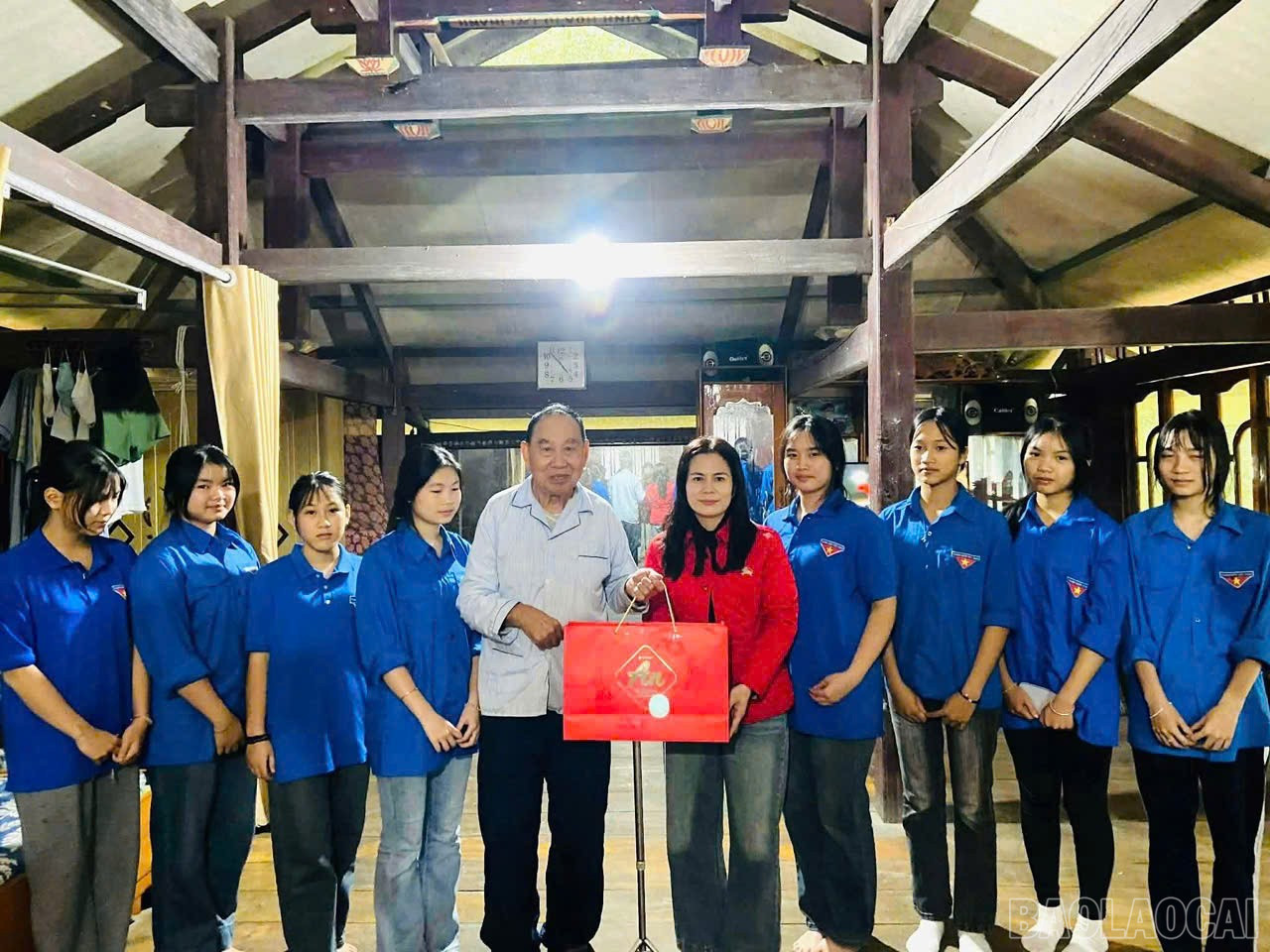 Các em học sinh đến thăm, tặng quà các cựu chiến binh và gia đình người có công với cách mạng.