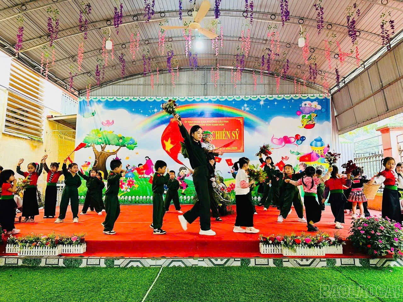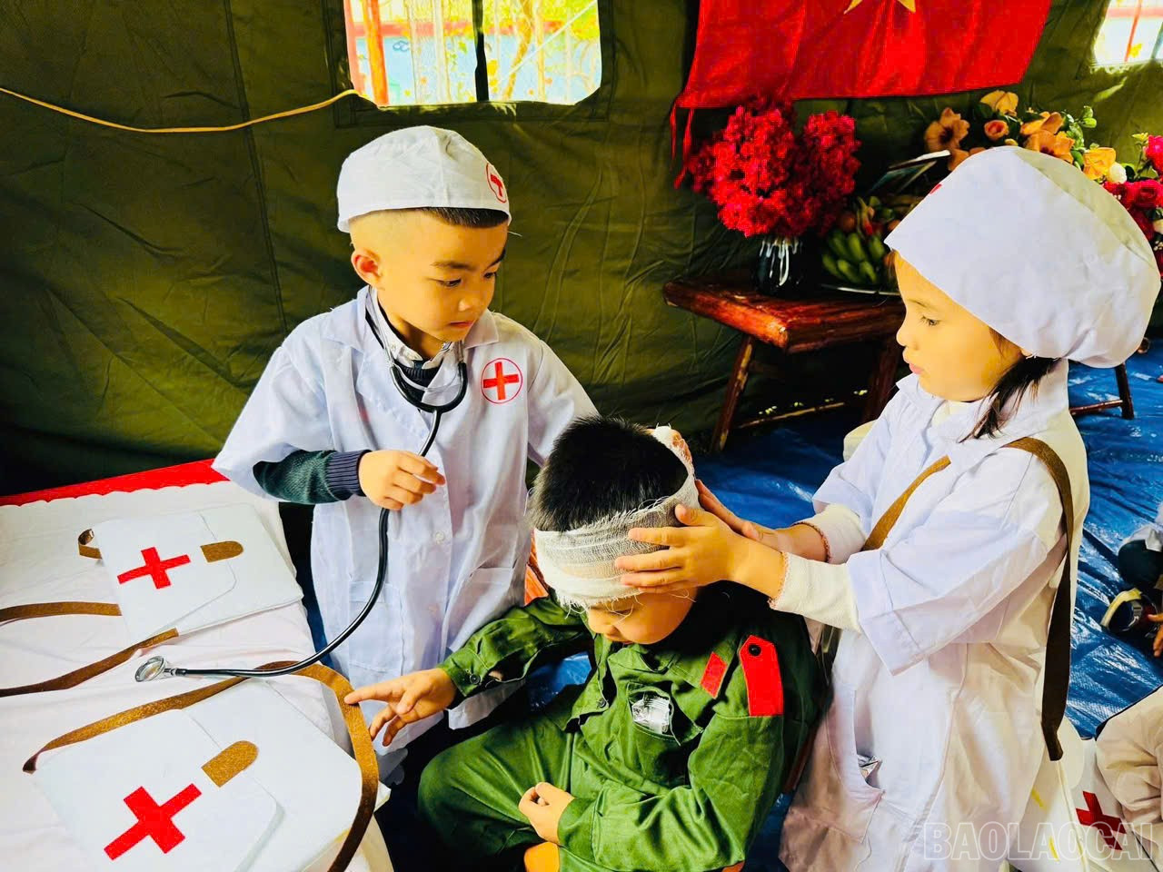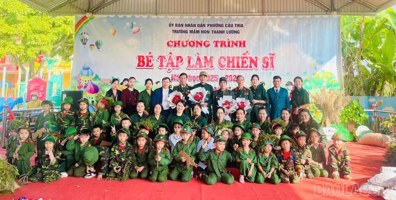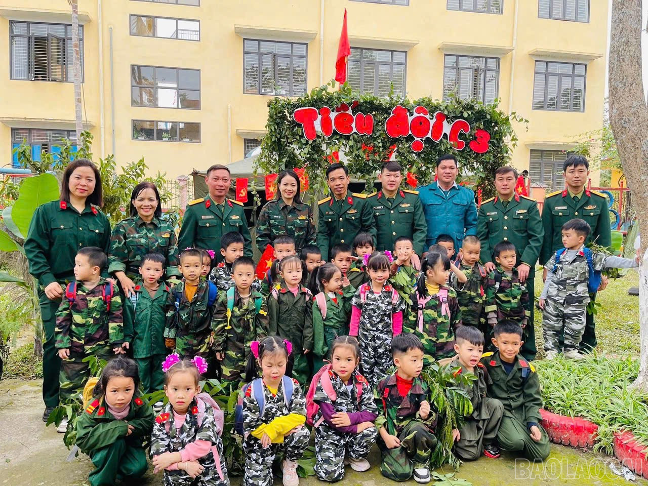 Ở bậc học mầm non, các trường tổ chức chương trình “Bé tập làm chiến sĩ” với những hoạt động trải nghiệm sinh động.