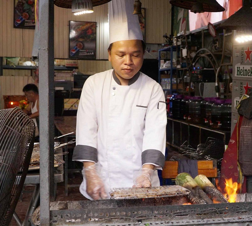 Đầu bếp nhà hàng Rừng nướng thể hiện các món ăn mang hượng vị đại ngàn giữa lòng phố biển, minh chứng cho sức hút đa văn hóa của vùng đất này
