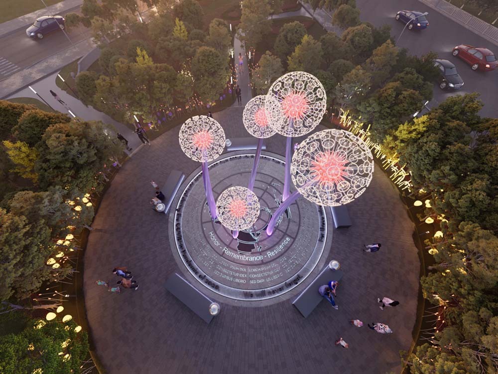 Một trong những công trình ấn tượng nhất là Đài tưởng niệm COVID-19 – Biểu tượng của Vinh danh, Tưởng niệm và Kiên cường. Công trình đang được xây dựng tại Khu Y tế Illinois, thành phố Chicago, dự kiến hoàn thành vào cuối năm 2025.