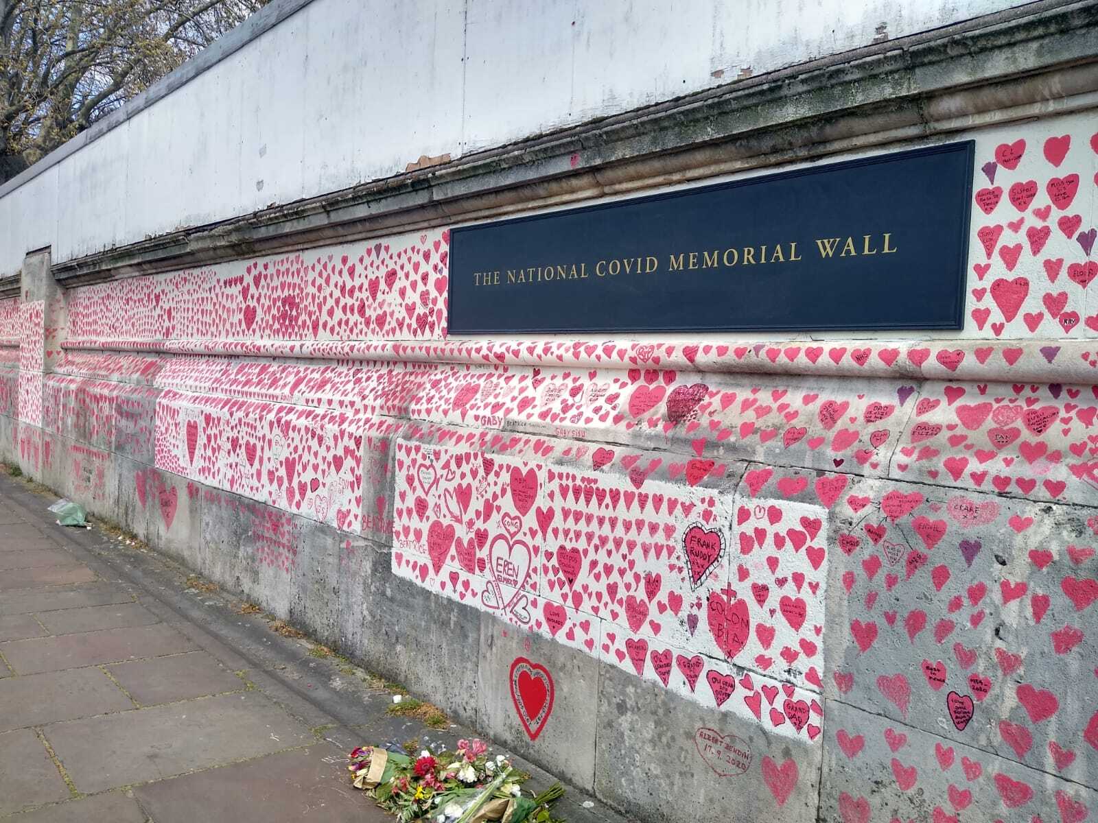 Tại London, nhiều công trình tưởng niệm đã được dựng lên để tưởng nhớ các nạn nhân của đại dịch COVID-19. Nổi bật nhất là Bức tường Tưởng niệm Quốc gia Covid, nằm dọc bờ nam sông Thames.