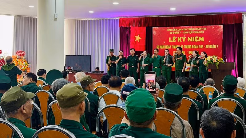 Tiết mục văn nghệ của các cựu chiến binh thuộc Trung đoàn 165, Sư đoàn 7 khu vực phía bắc tại lễ kỷ niệm 60 năm ngày thành lập.