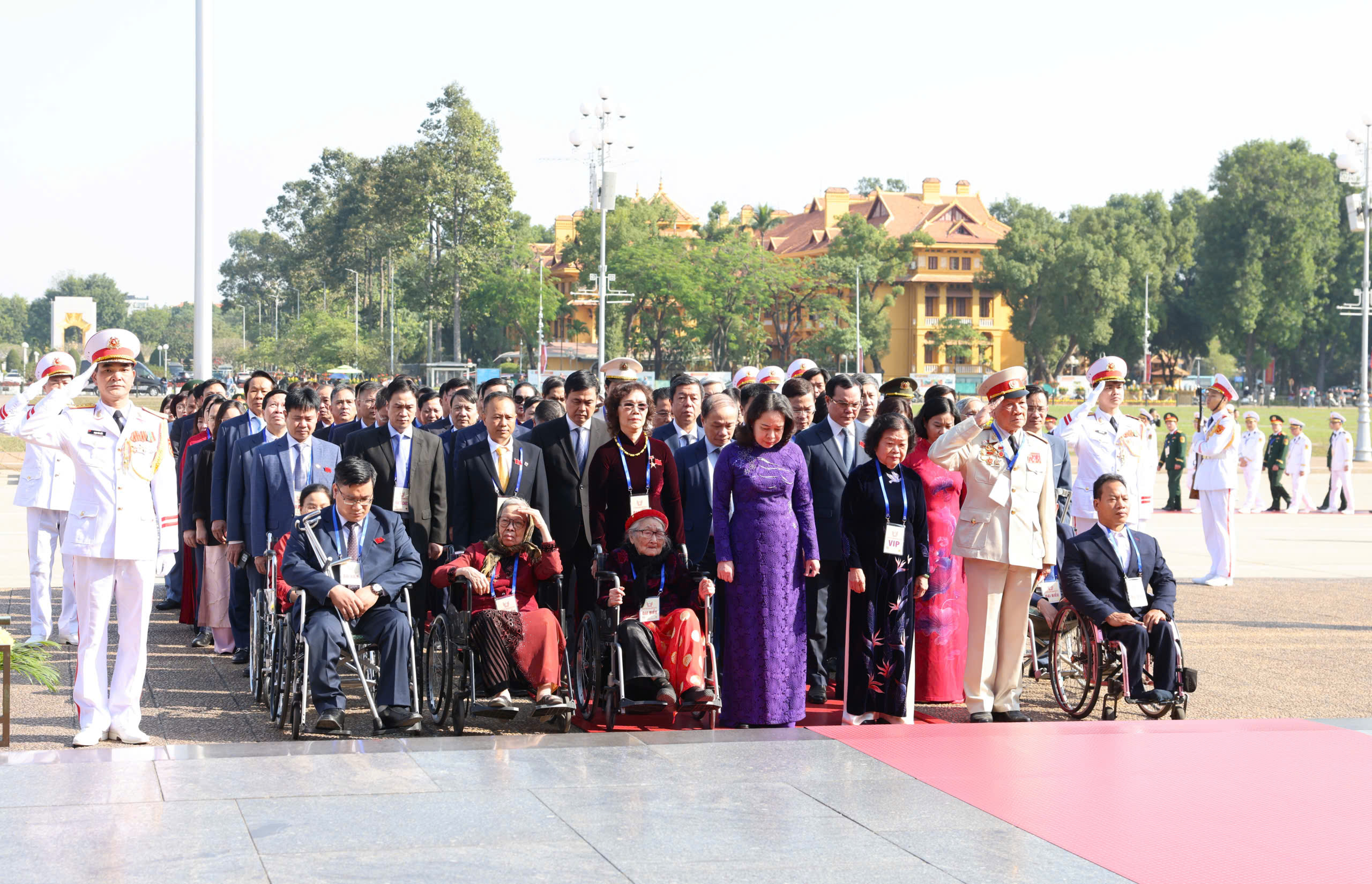 Phó Chủ tịch nước Võ Thị Ánh Xuân cùng các đại biểu vào Lăng viếng Chủ tịch Hồ Chí Minh. Ảnh: QUANG PHÚC