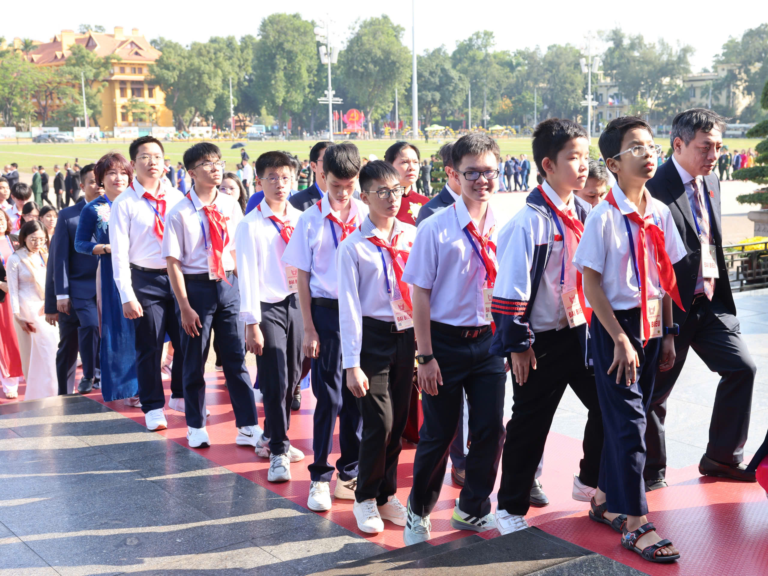 Đoàn đại biểu là những học sinh lớp 6 vào Lăng viếng Chủ tịch Hồ Chí Minh. Ảnh: QUANG PHÚC