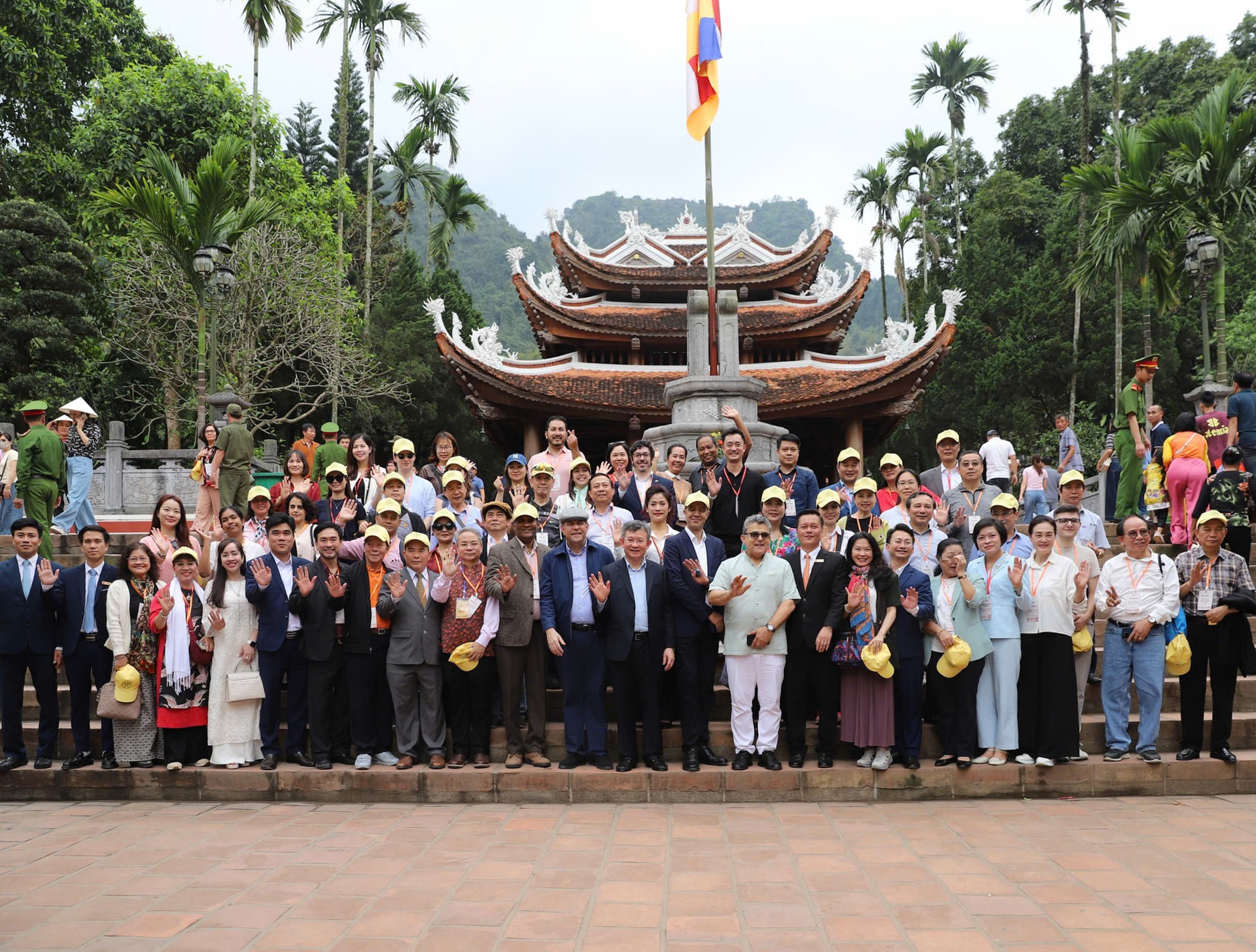 Đoàn đại biểu chụp ảnh tại chùa Thiên Trù. Ảnh: Quỳnh Dương.