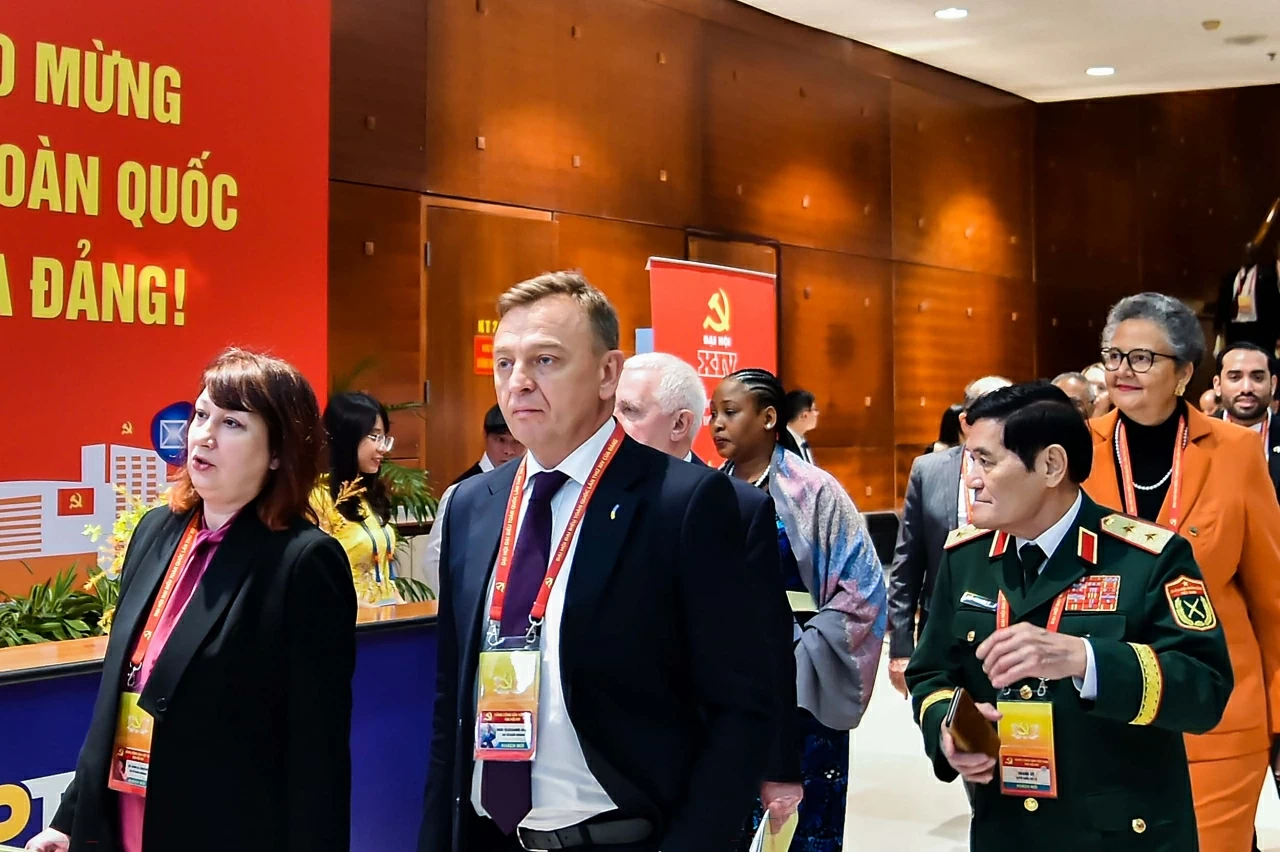 Nhiều đại biểu quốc tế hòa chung bầu không khí của Lễ khai mạc Đại hội XIV của Đảng. (Ảnh: Quang Hòa)