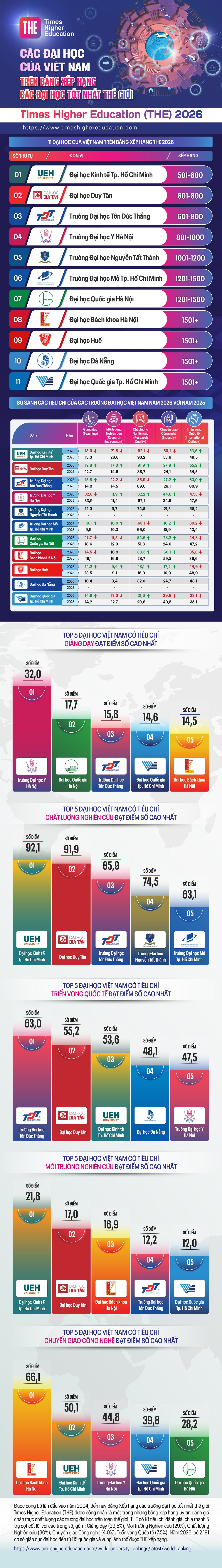 Các đại học của Việt Nam trên bảng xếp hạng các đại học tốt nhất thế giới (THE 2026)