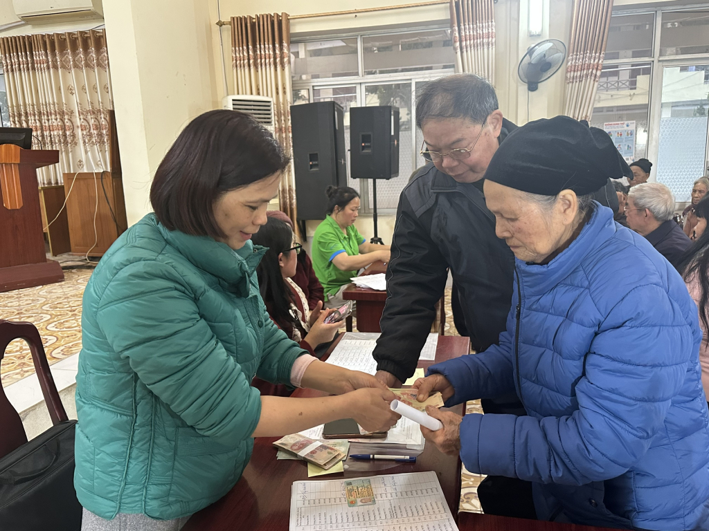 Xã Đông Khê thực hiện chi trả quà tặng của Đảng, Nhà nước các đối tượng.