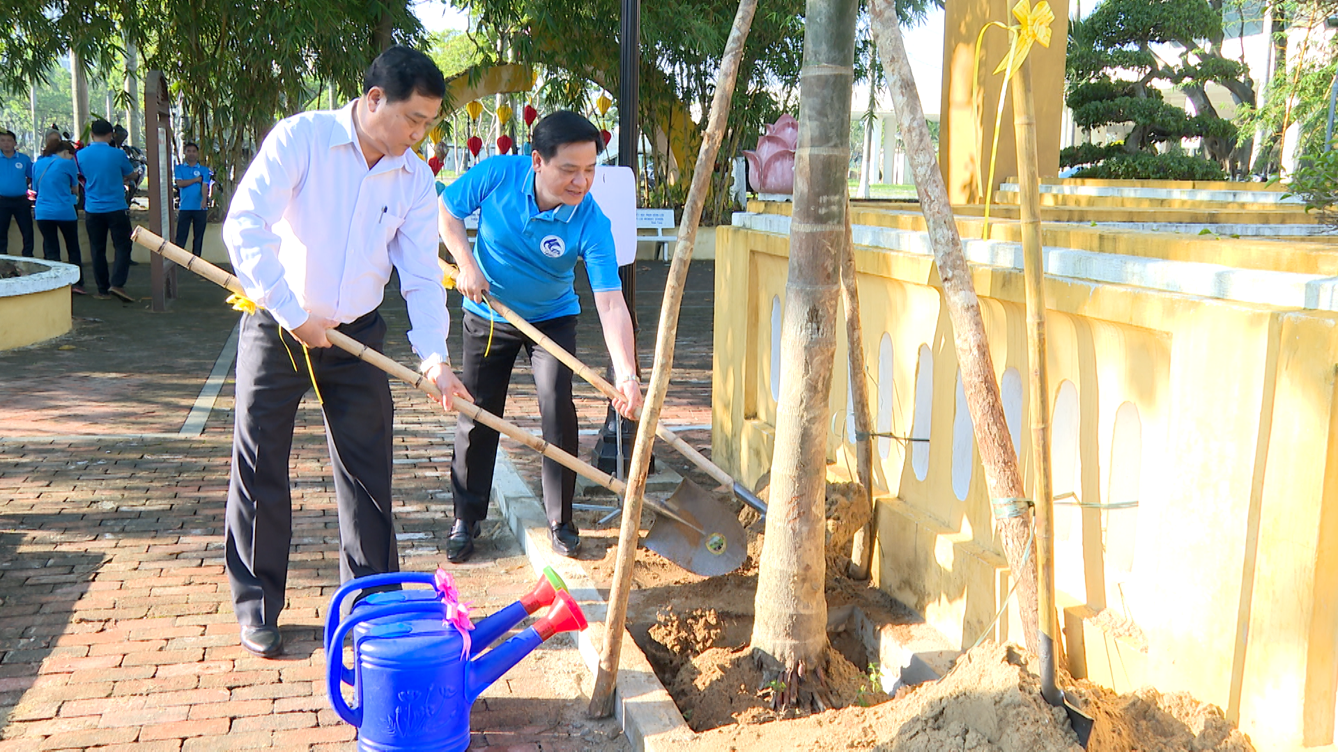 Ngay sau lễ phát động, lãnh đạo phường cùng các tổ dân phố trồng 12 cây xanh trong khuôn viên đình làng.