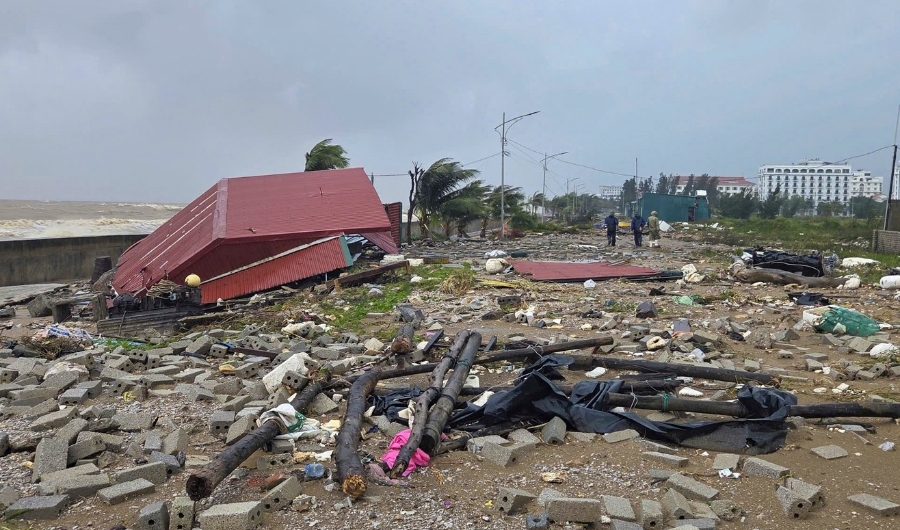 Dọc tuyến đường ở khu du lịch biển Hải Tiến (Thanh Hóa) nay là cảnh ngổn ngang, xác xơ sau bão.