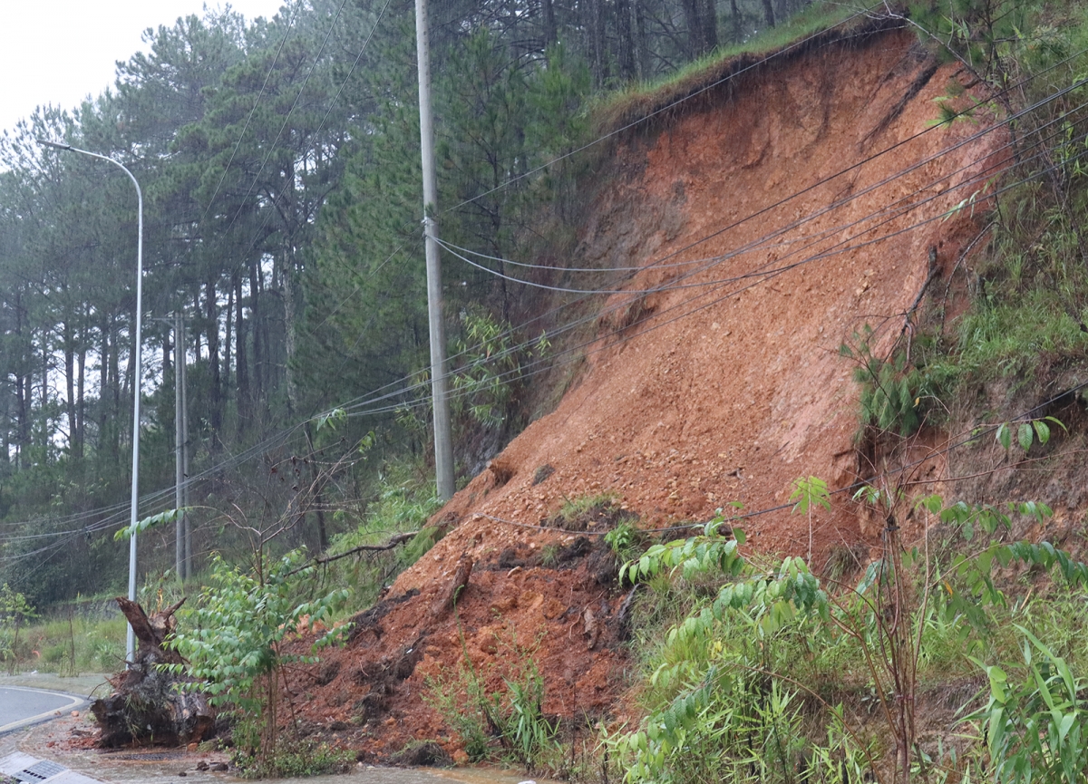 Do mưa kéo dài nhiều điểm sạt lở trên các tuyến giao thông ở tỉnh Lâm Đồng có xu hướng mở rộng