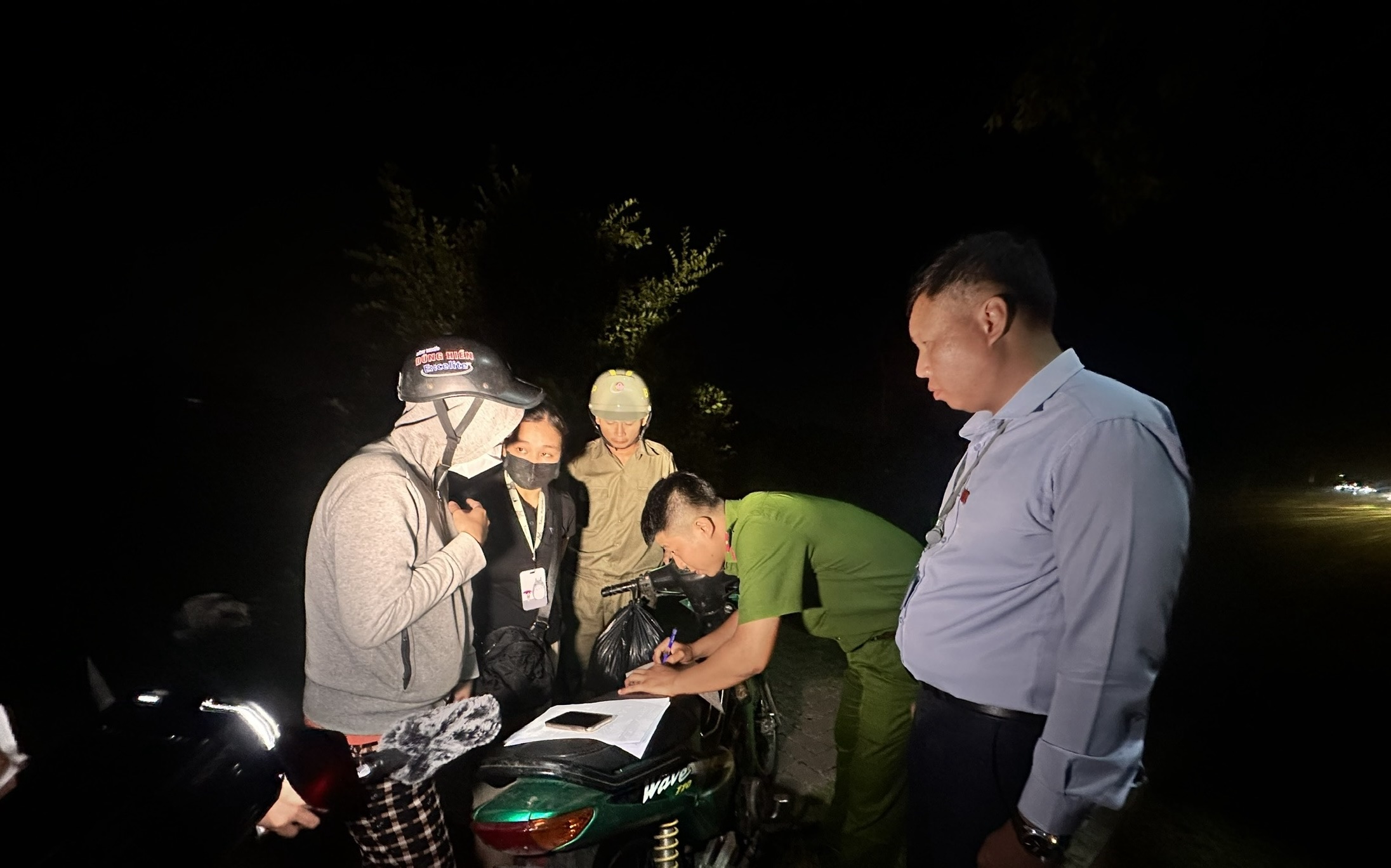 Lực lượng chức năng phường Phước Thắng (TPHCM) mật phục bắt đối tượng đổ rác trộm trong đêm tại các khu đất trống. Ảnh: QUANG VŨ