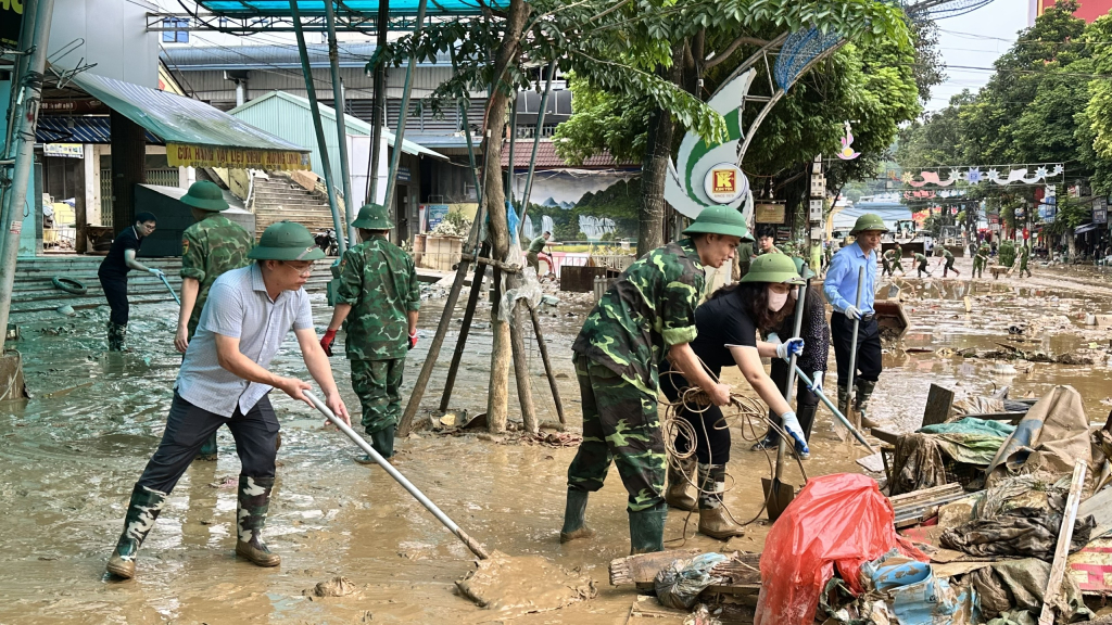 Ngay sau lễ phát động, gần 1.000 người gồm cán bộ, chiến sĩ lực lượng Quân đội, Công an, công nhân vệ sinh môi trường, cán bộ, công chức, viên chức, người lao động và nhân dân đã đồng loạt ra quân tổng vệ sinh tại các tuyến phố chính như: phố Kim Đồng, Phố Thầu, Bế Văn Đàn, Xuân Trường, Vườn Cam, Hoàng Văn Thụ… Các lực lượng tập trung thu gom rác thải, nạo vét bùn đất, khơi thông cống rãnh, rửa đường, khử khuẩn môi trường, đặc biệt ưu tiên những khu vực ngập sâu, nhiều rác ứ đọng.