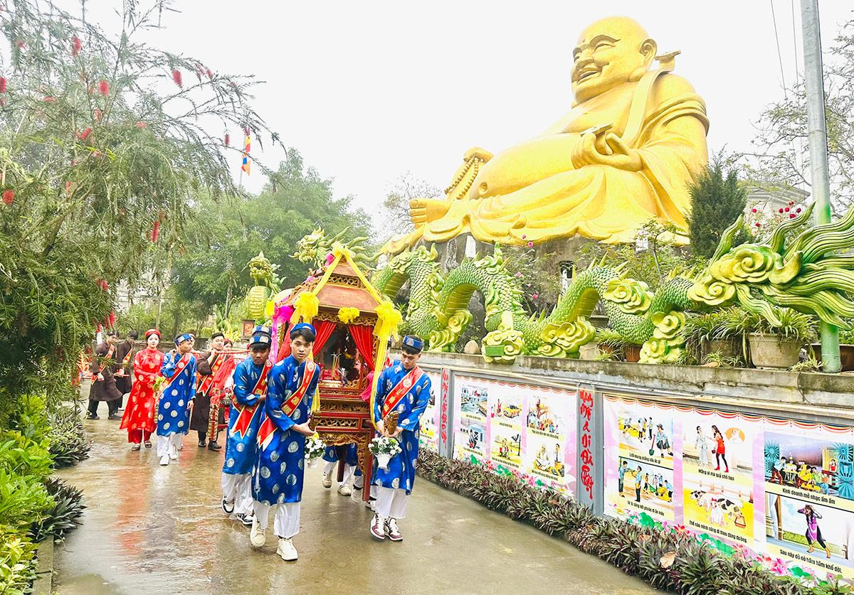 Trong phần lễ, các đại biểu, tăng ni, phật tử cùng nhân dân thành tâm dâng hương, cầu cho mưa thuận gió hòa, quốc thái dân an, nhà nhà ấm no, hạnh phúc. Sau phần lễ là chương trình nghệ thuật đặc sắc với những tiết mục ca múa ca ngợi quê hương, đất nước, thu hút đông đảo người dân và du khách thưởng thức.