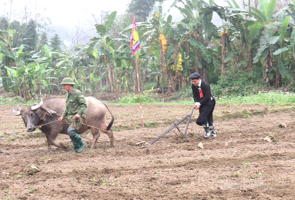 Nghi thức Tịch điền tại Lễ hội Lồng Tông xã Xuân Giang.