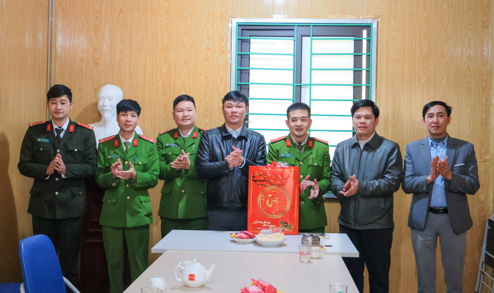Đoàn công tác do đồng chí Hoàng Văn Khánh, Bí thư Đảng ủy xã làm trưởng đoàn; đại diện lãnh đạo HĐND, UBND xã đến thăm, chúc tết Ban Chỉ huy Quân sự xã và Công an xã Nam Quang.