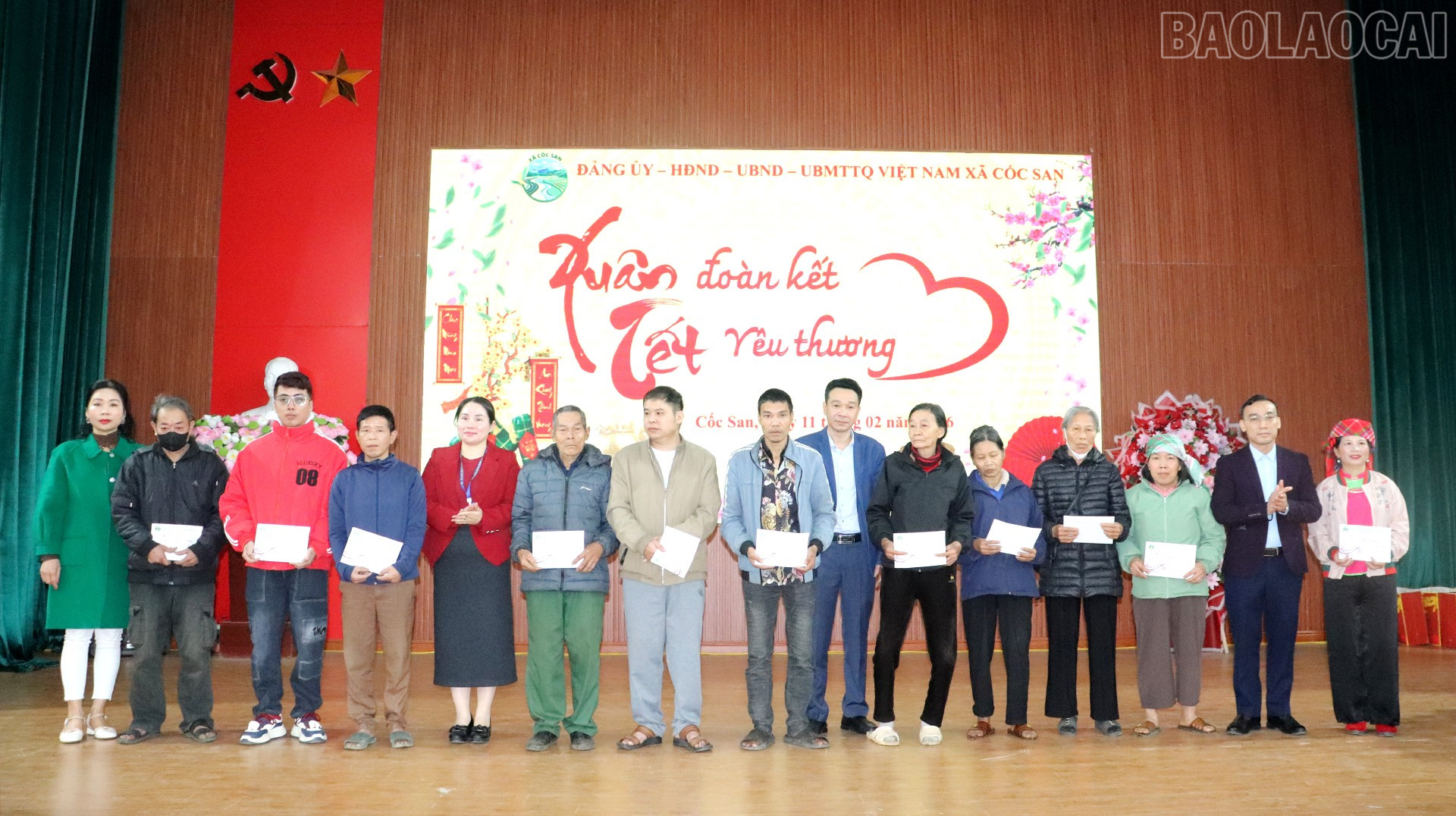 Thực hiện chương trình chăm lo Tết cho các đối tượng chính sách và người dân có hoàn cảnh khó khăn, dưới sự chỉ đạo trực tiếp của Thường trực Đảng ủy xã Cốc San, UBND xã đã phối hợp với Ban Thường trực Ủy ban MTTQ Việt Nam xã tổ chức vận động, tiếp nhận nguồn kinh phí, quà tặng từ các tổ chức, đơn vị, doanh nghiệp và các nhà hảo tâm để hỗ trợ các đối tượng chính sách, người có công, người yếu thế trên địa bàn.