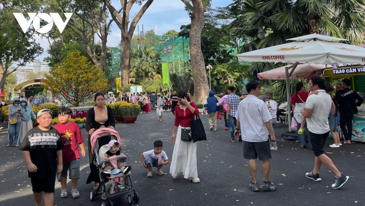 Ngoài đường hoa Nguyễn Huệ, các điểm vui chơi, giải trí tại trung tâm TP.HCM cũng đón rất đông người dân. Tại Thảo Cầm Viên (phường Sài Gòn, thuộc quận 1 trước đây), biển người đổ về để tìm chỗ vui chơi rộng rãi, thoáng mát.