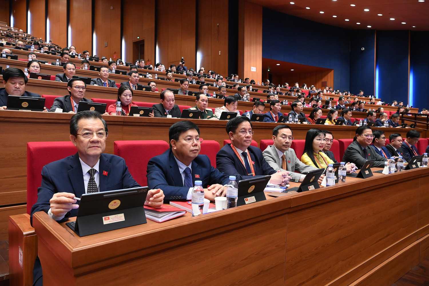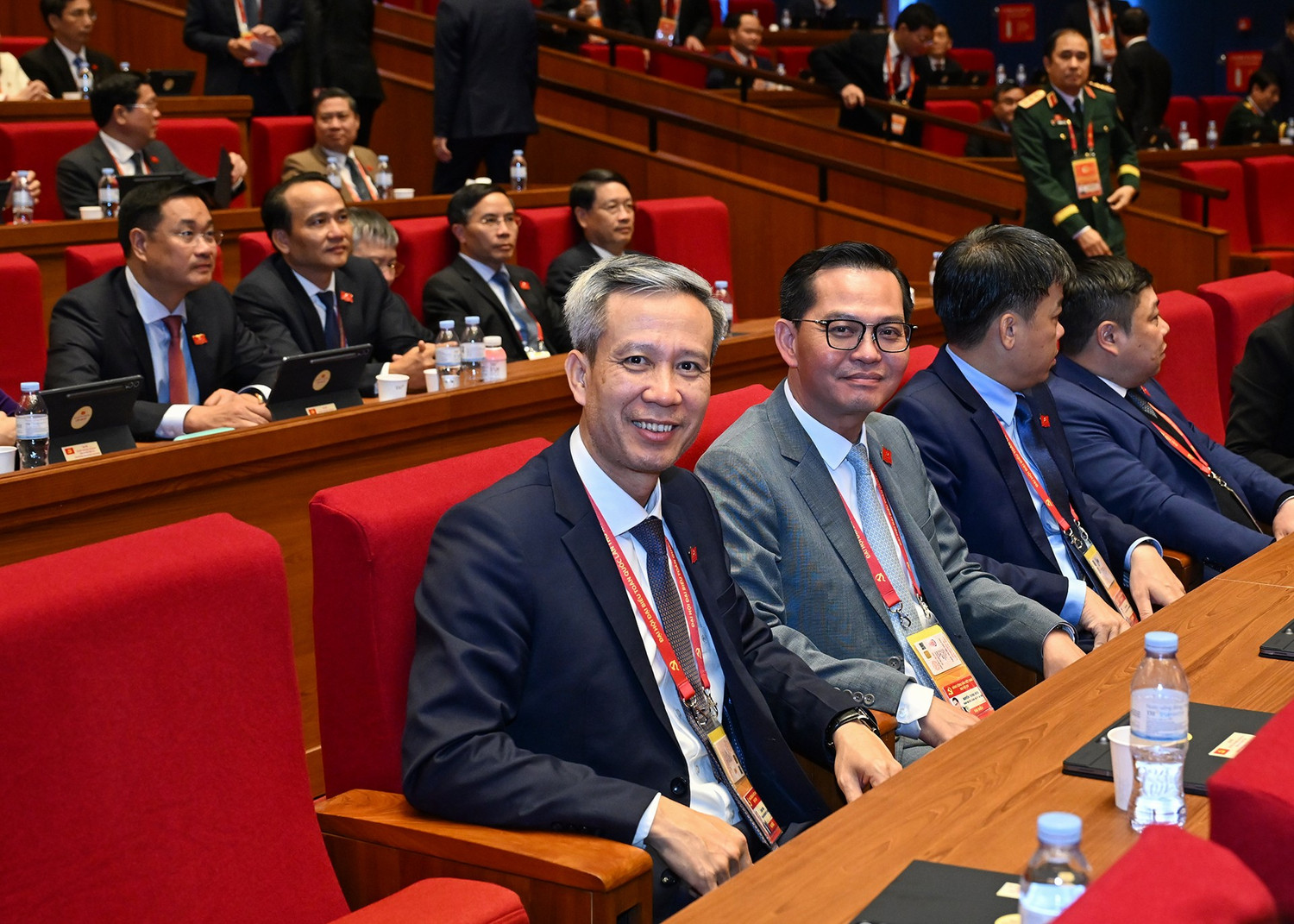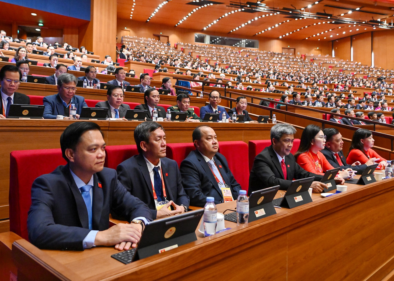 Các đại biểu đoàn An Giang tại phiên thảo luận ở hội trường về các Văn kiện Đại hội.