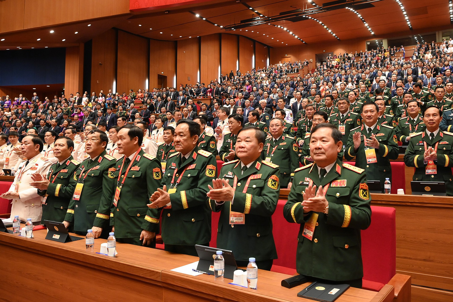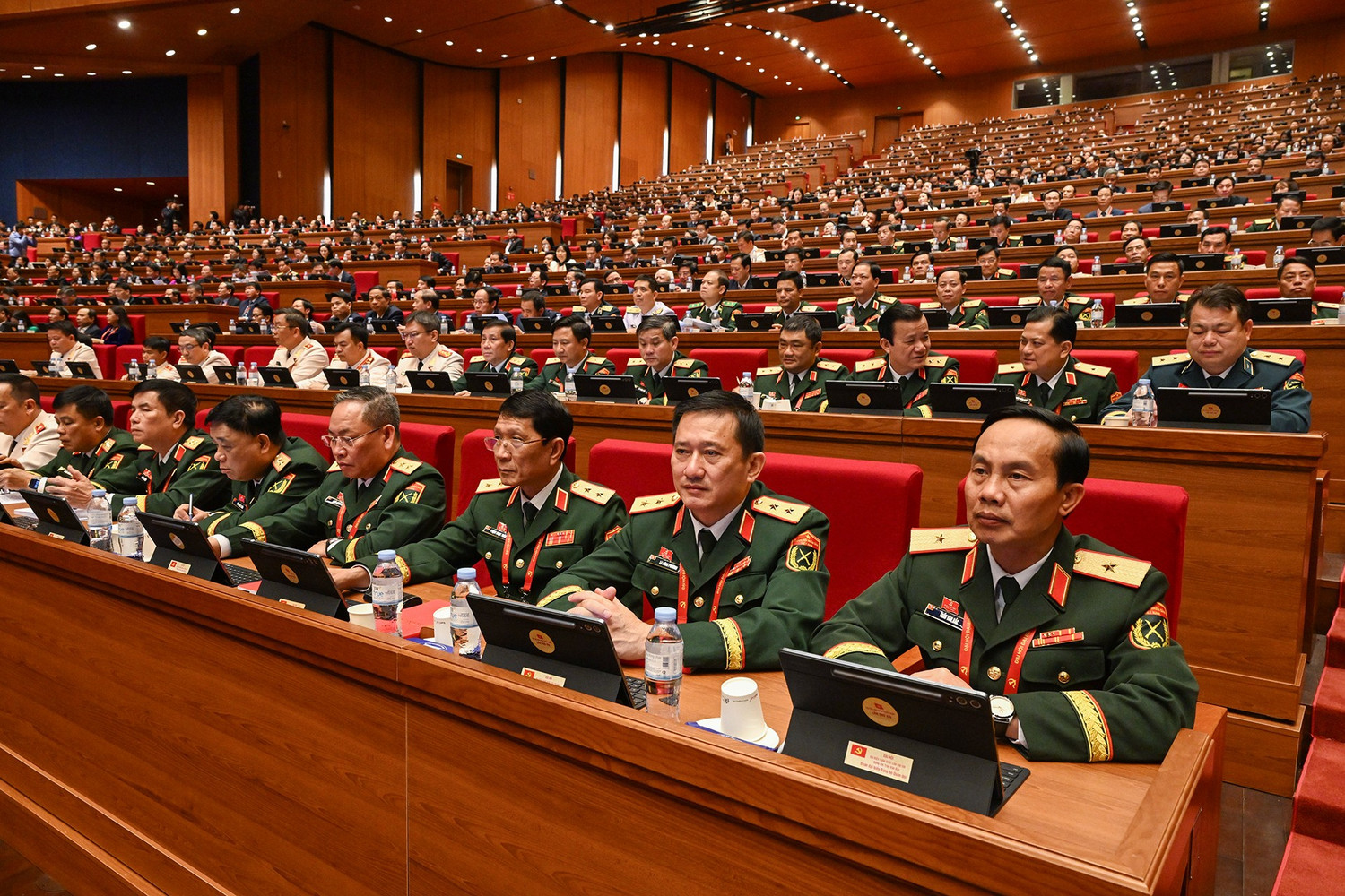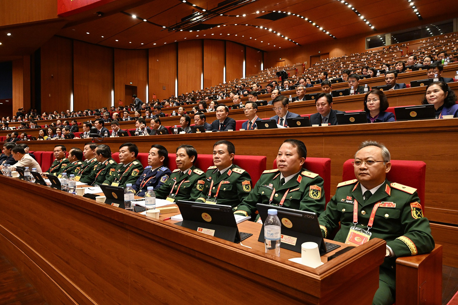 Các đại biểu đoàn Quân đội tại phiên thảo luận ở hội trường về các Văn kiện Đại hội.