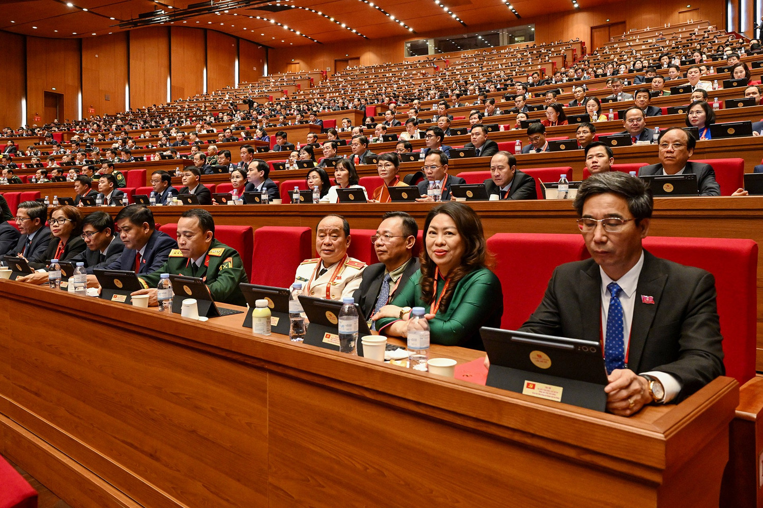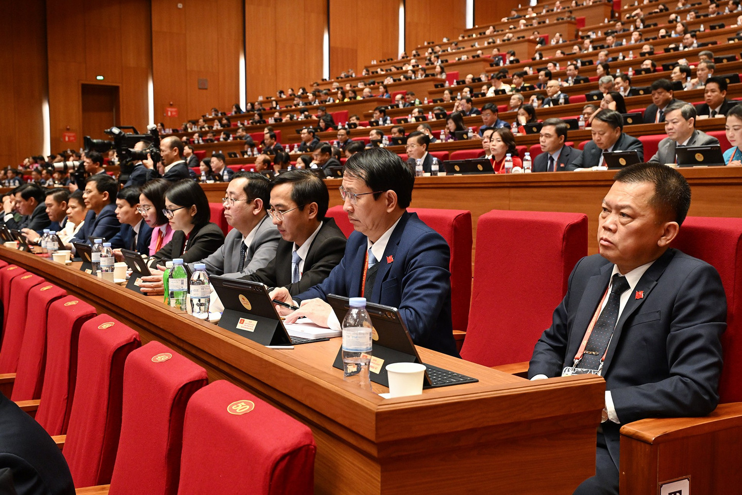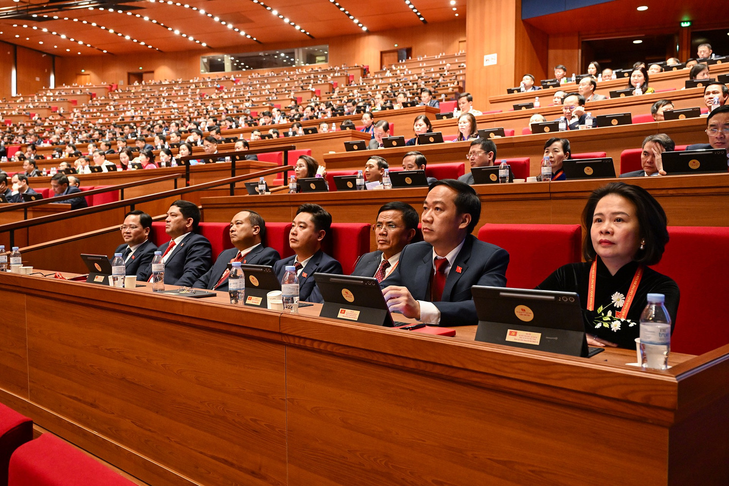Các đại biểu đoàn Nghệ An và Bắc Ninh tại phiên thảo luận ở hội trường về các Văn kiện Đại hội.