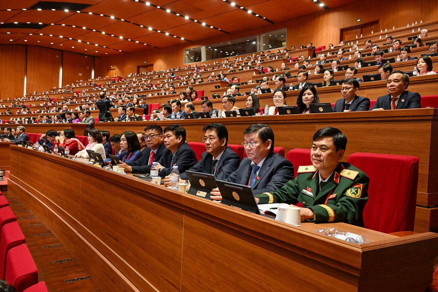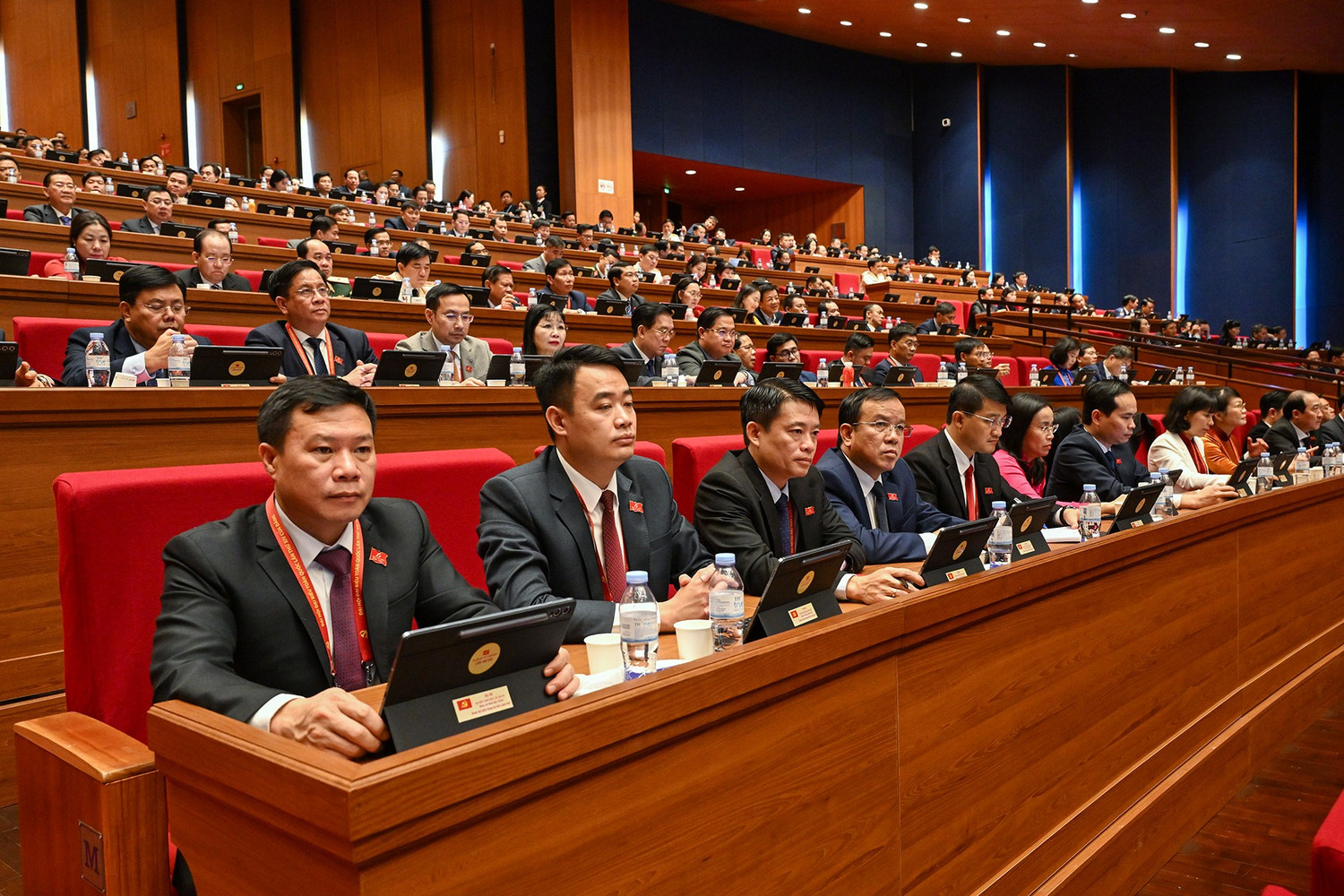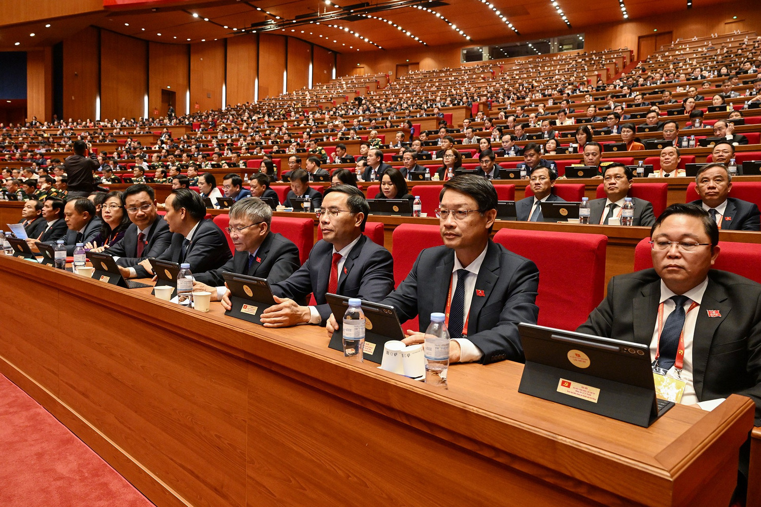 Các đại biểu đoàn Nghệ An và Bắc Ninh tại phiên thảo luận ở hội trường về các Văn kiện Đại hội.