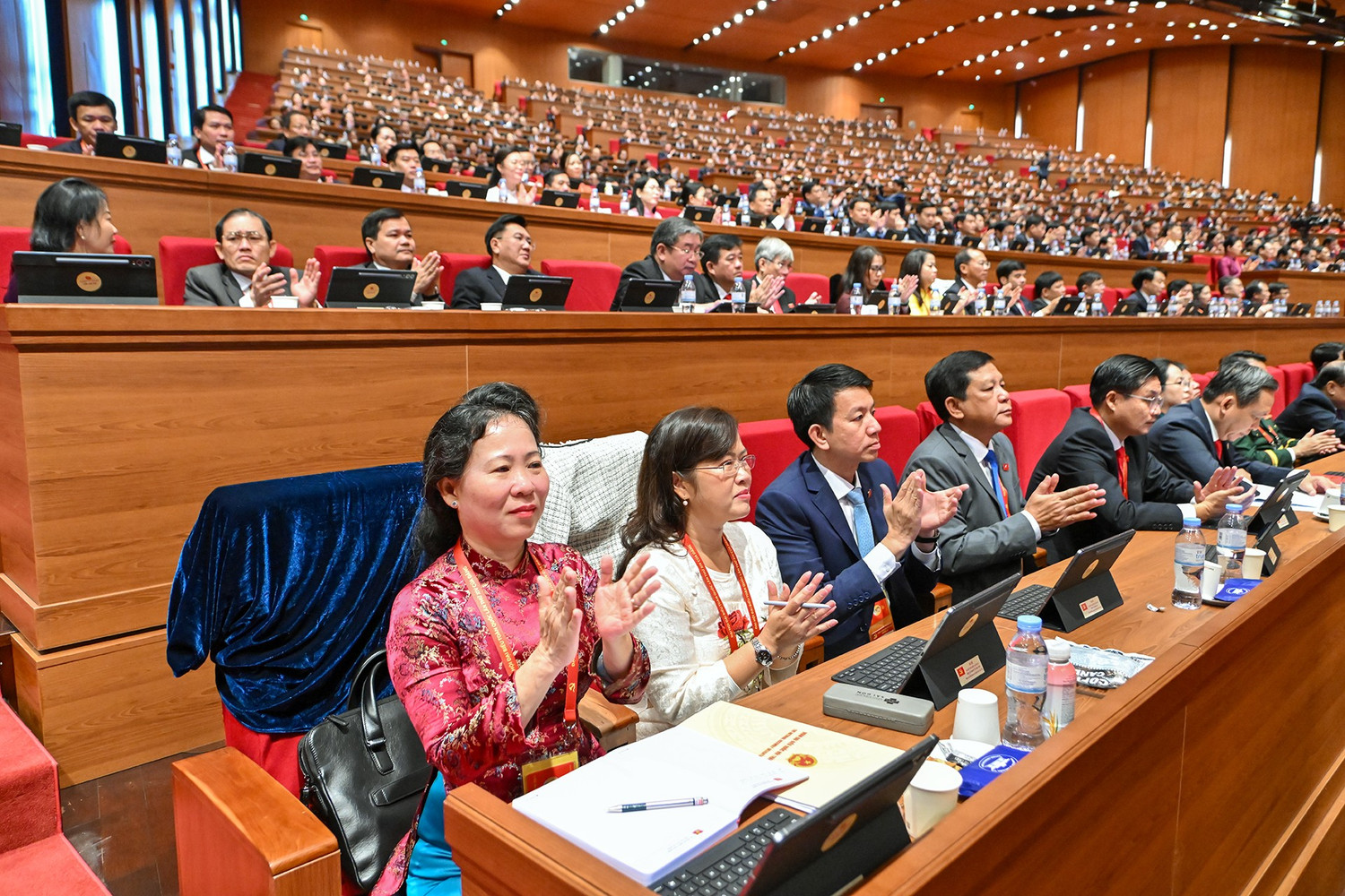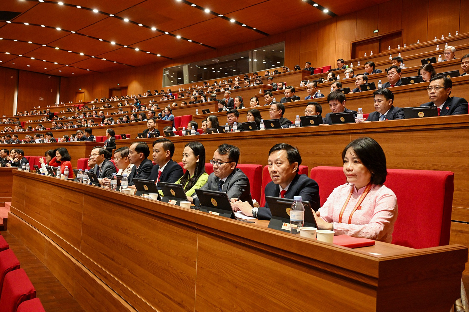 Các đại biểu đoàn Hà Nội tại phiên thảo luận ở hội trường về các Văn kiện Đại hội.