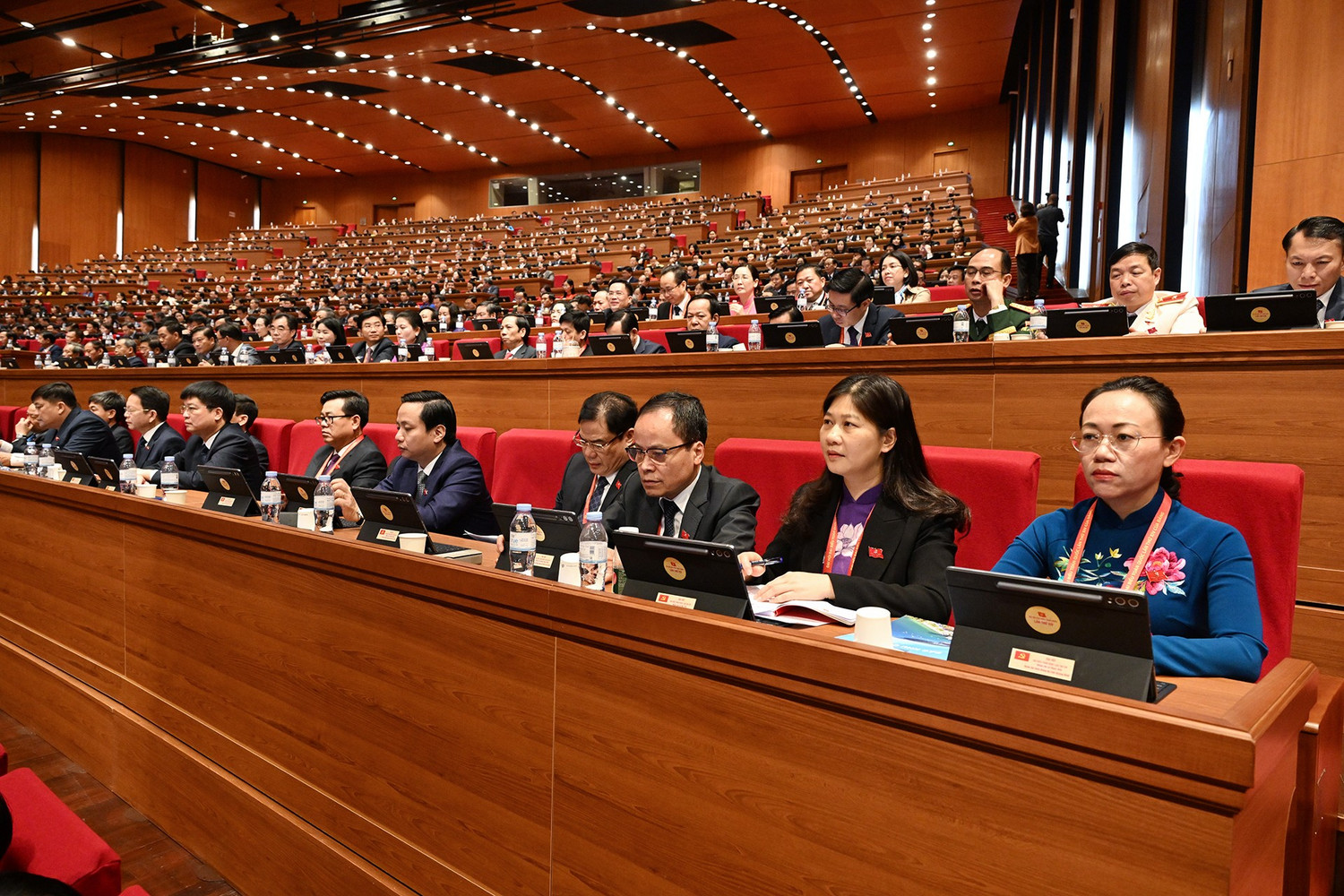 Các đại biểu đoàn Lạng Sơn tại phiên thảo luận ở hội trường về các Văn kiện Đại hội.